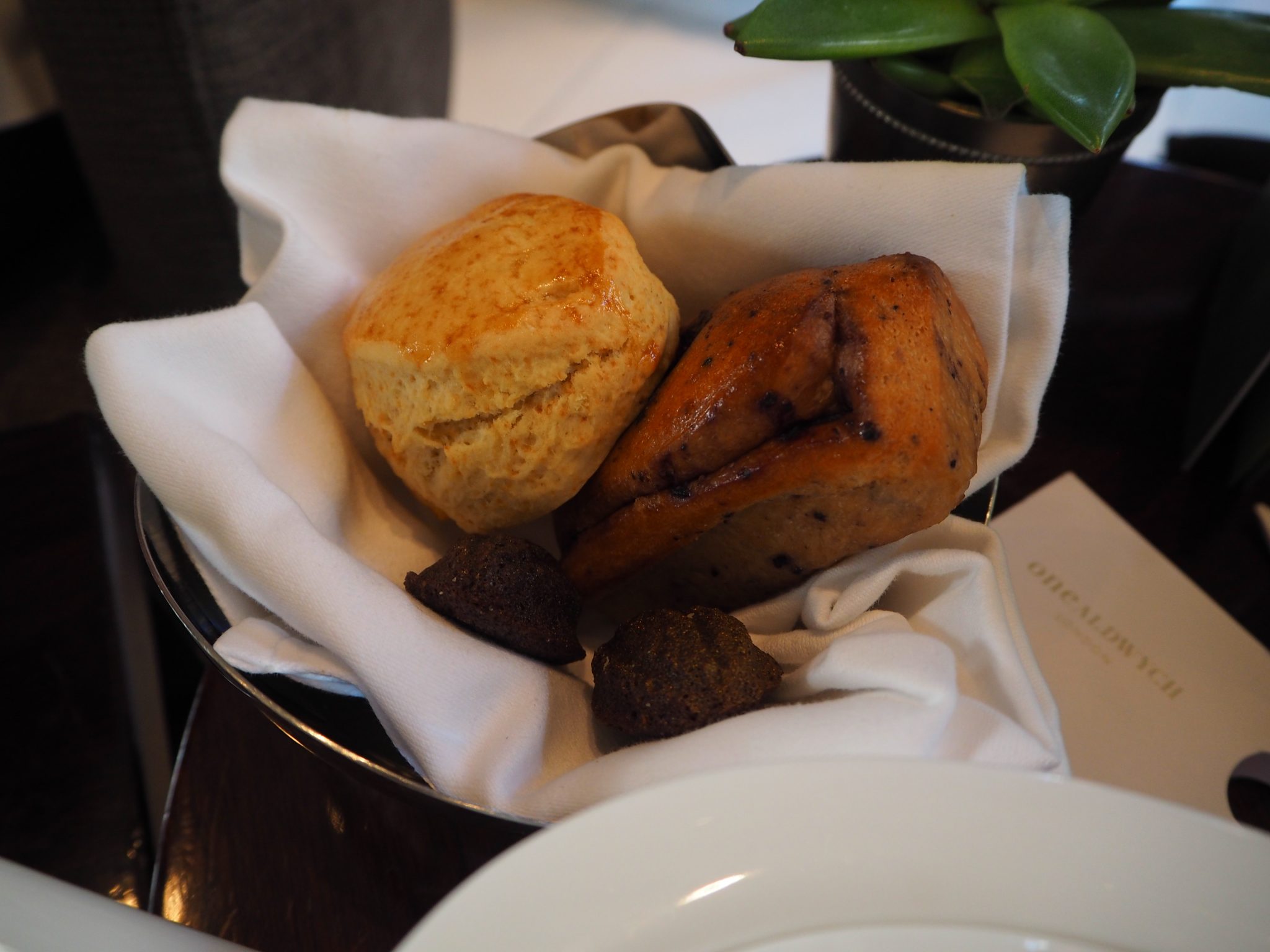 The plain scones were served warm with berry jam, apple compote and clotted cream. The apple compote is a nice touch, though I’d recommend putting it on the brioche rather than the scone.