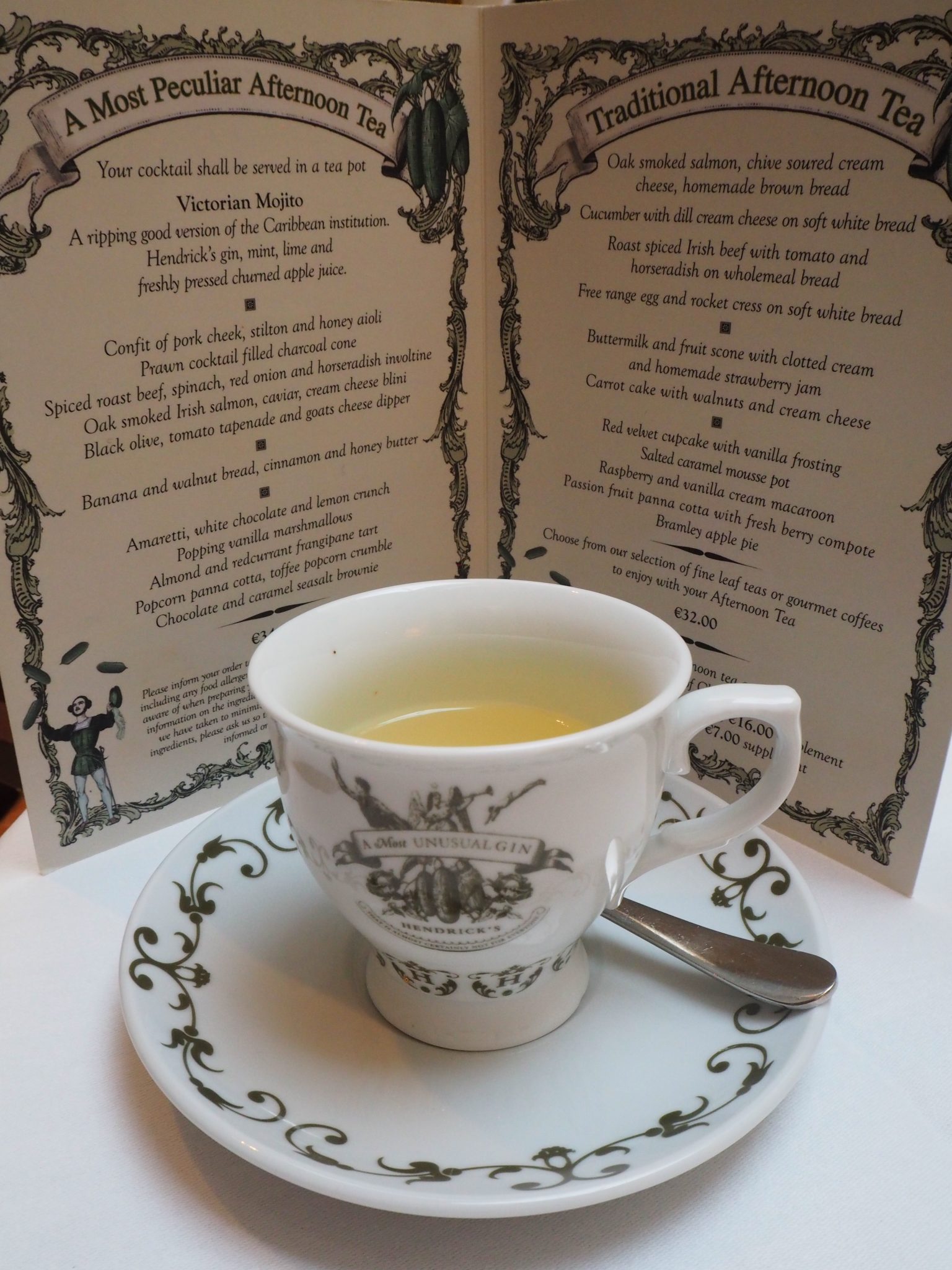 The “Most Peculiar Afternoon Tea” is with a Victorian Mojito cocktail, which is served in a gorgeous limited edition Hendrick’s Gin teapot.