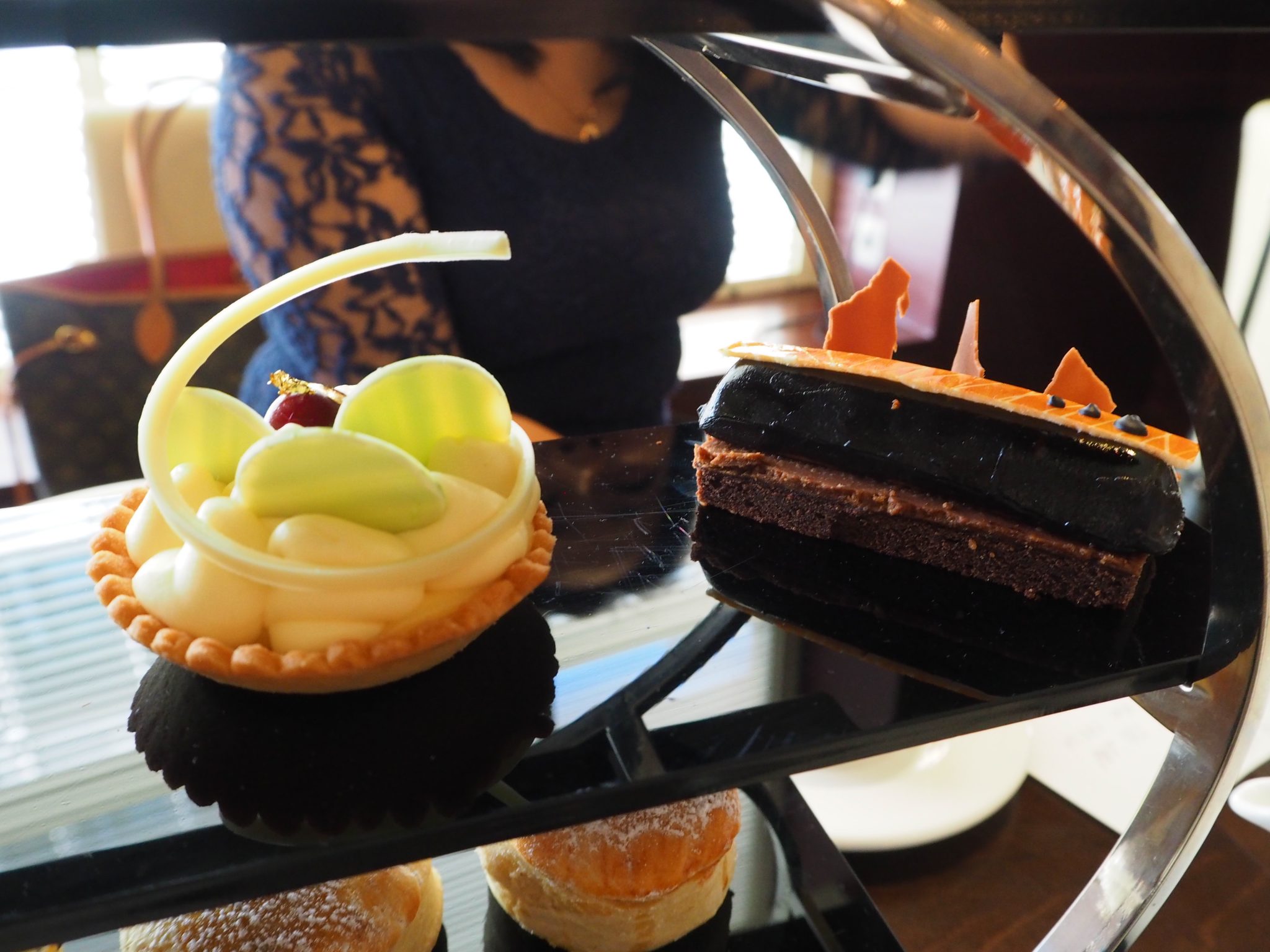 For most afternoon teas, guests are usually served with one type of each cake, so everyone can try each pastry without having to cut everything in half (and destroy it in the process). In this instance, you will have to do just that since the cakes cannot be refilled.