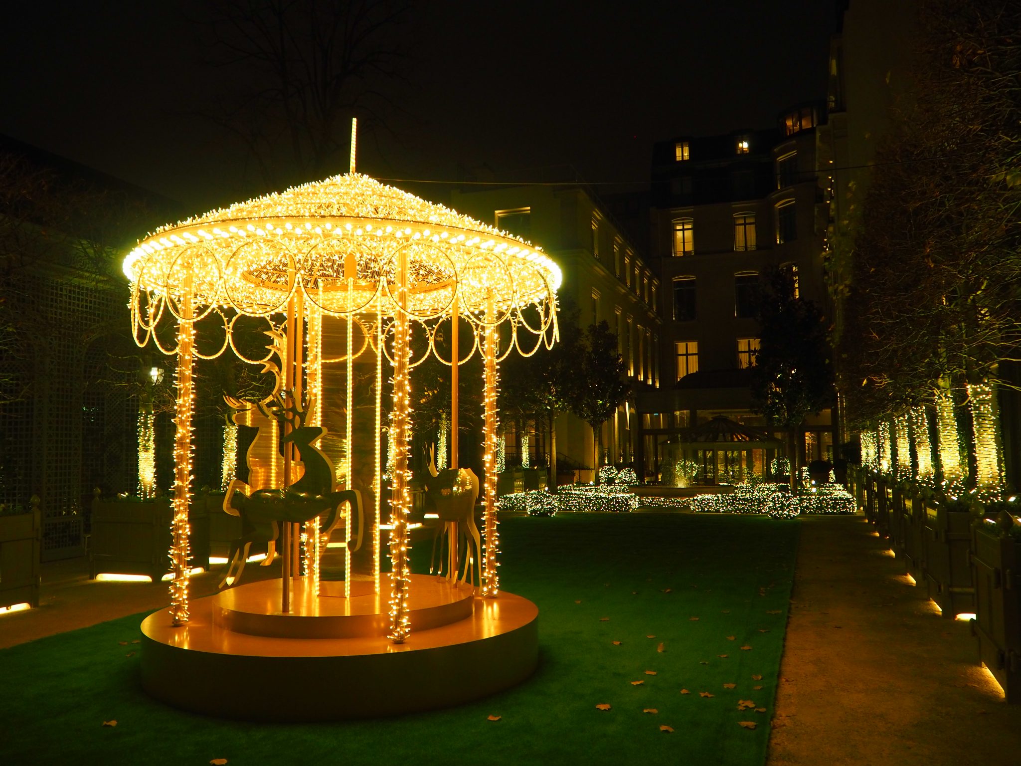 Les journées d’hiver sont courtes et le soleil se couche avant la fin du thé. C’est l’occasion d’admirer l’hôtel Ritz de nuit: la cour intérieure est sublimement éclairée en cette période de fêtes et la place Vendôme se révèle plus belle encore.