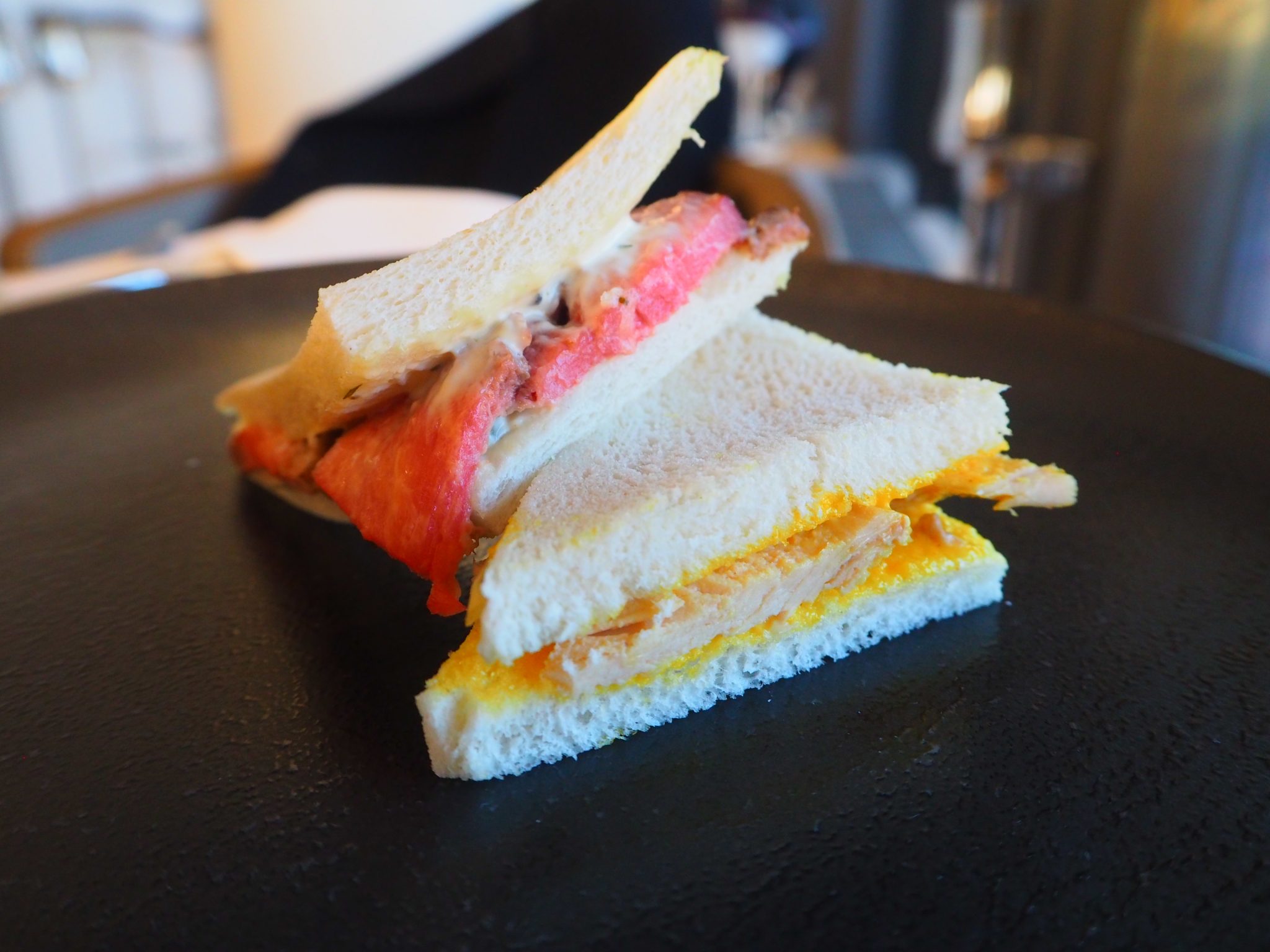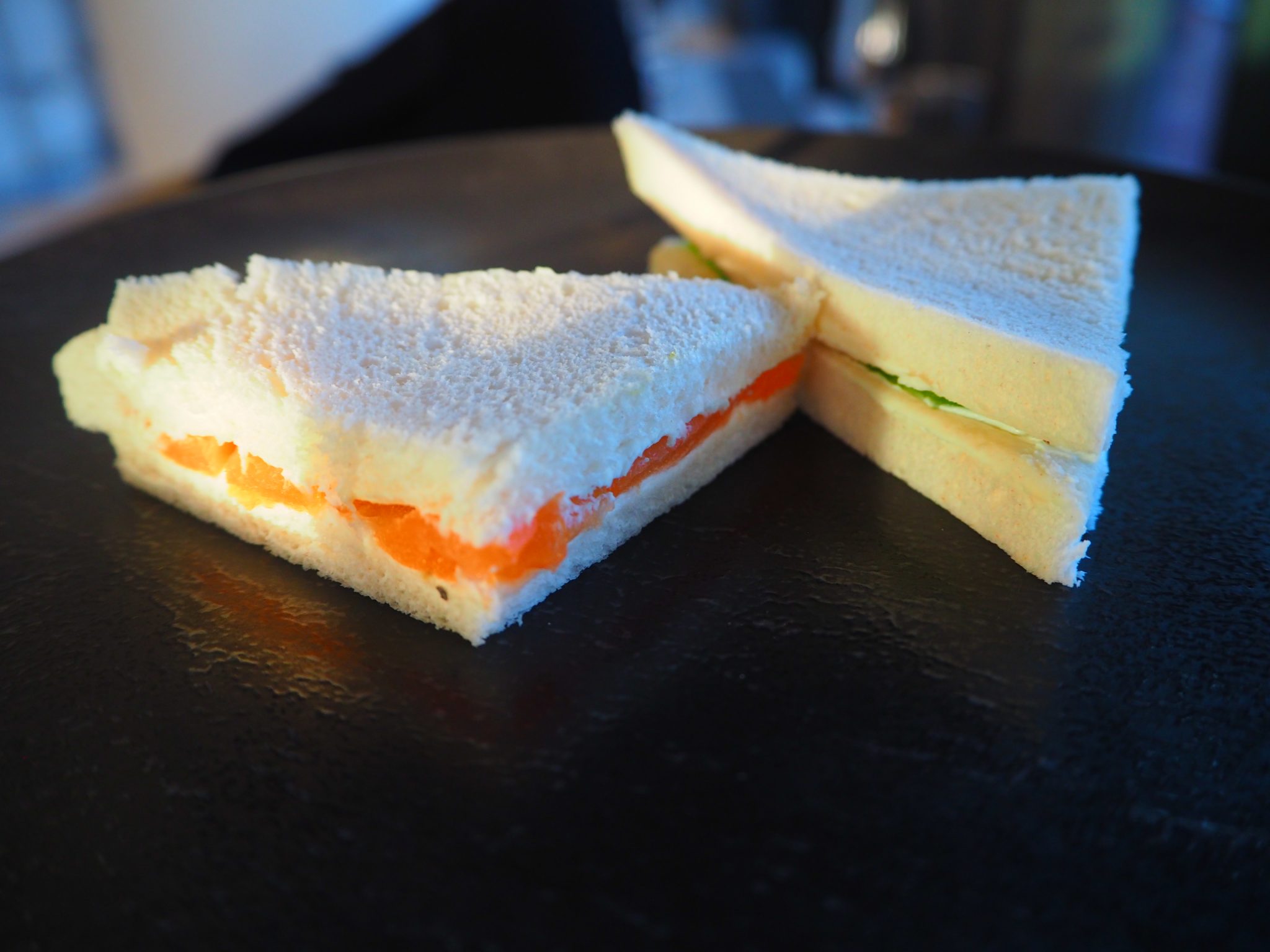 The sandwiches are rather ordinary and obviously not fresh. Think of these as appetizers to accompany your glass of Champagne.