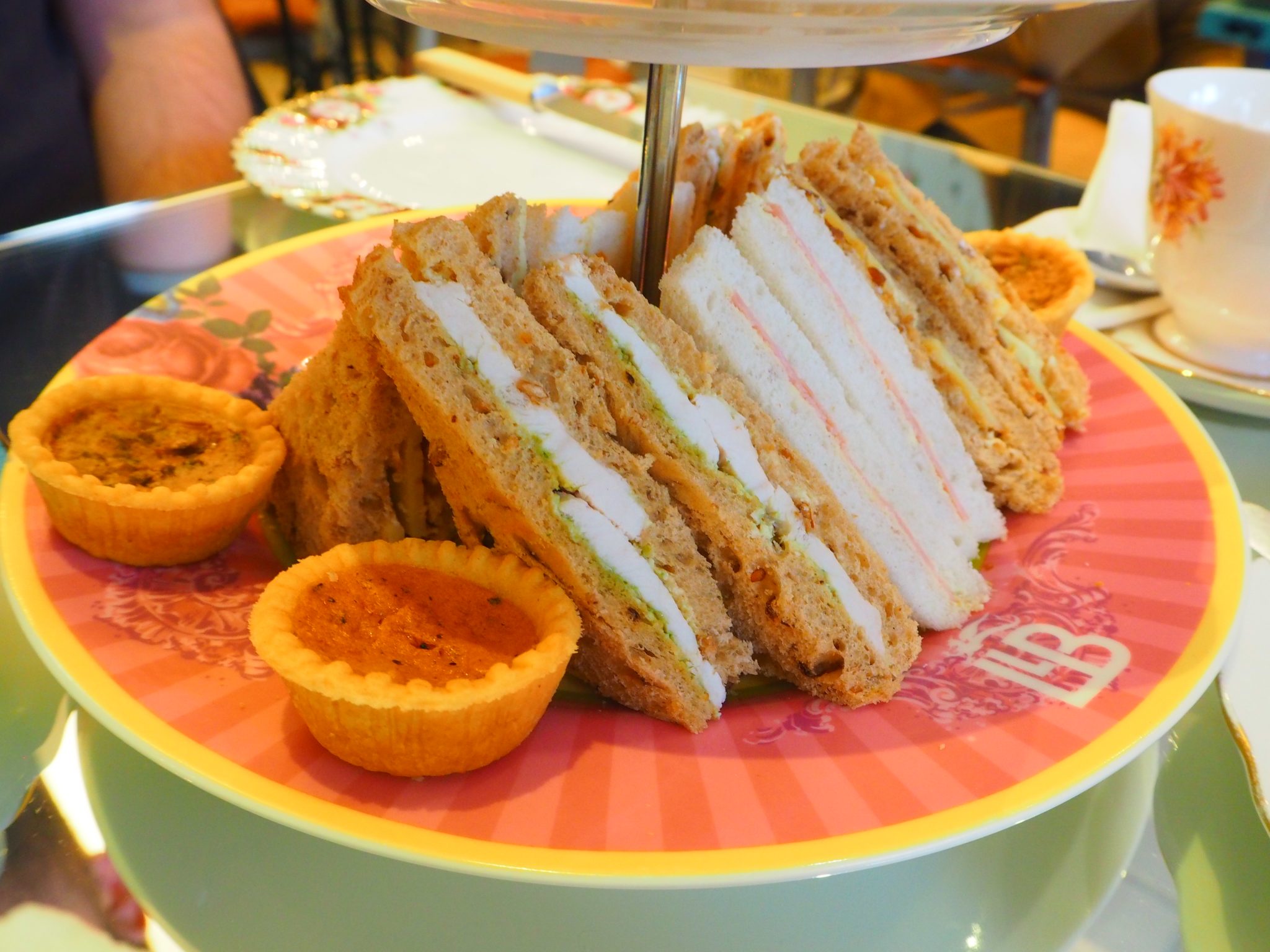 - The Traditional afternoon tea savouries: 3 sorts of finger sandwiches and savoury bites (.e.g. quiche).