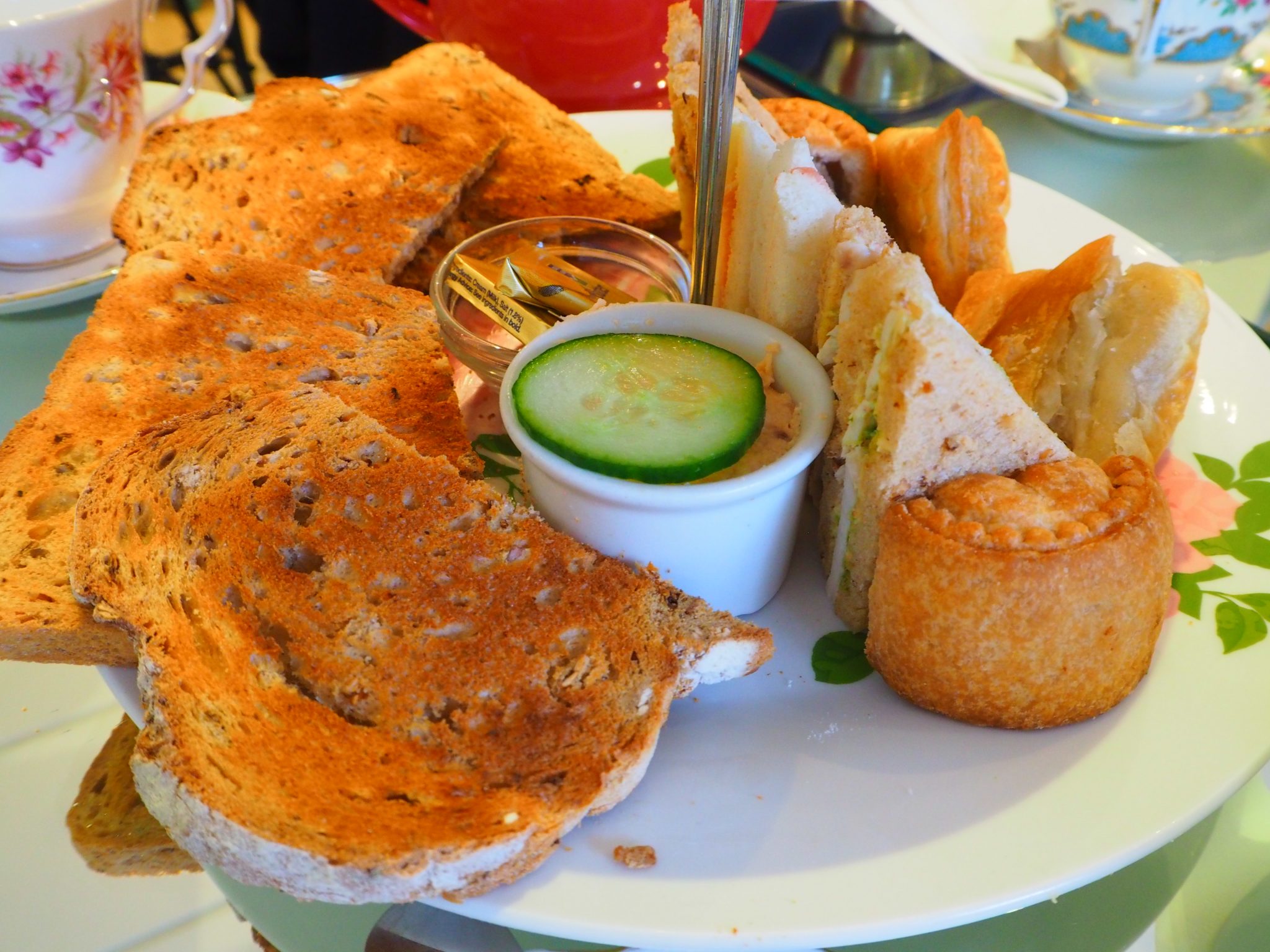 - The Gentleman’s afternoon tea savouries: 3 sorts of finger sandwiches, pork pie, sausage rolls and fresh toasted bread with salmon or pork pâté.
