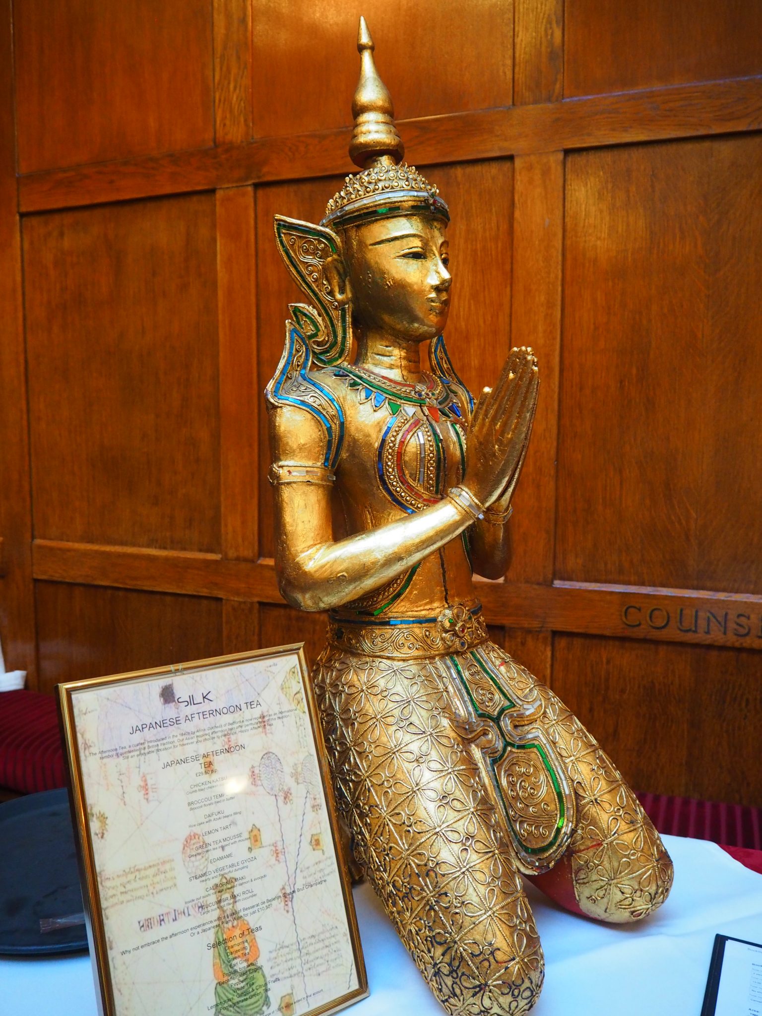 Afternoon Tea is served in the Silk restaurant, where Asian idols and a former British courtroom setting awkwardly coexist. Some may like these daring decorative choices but I just found them a bit tacky.