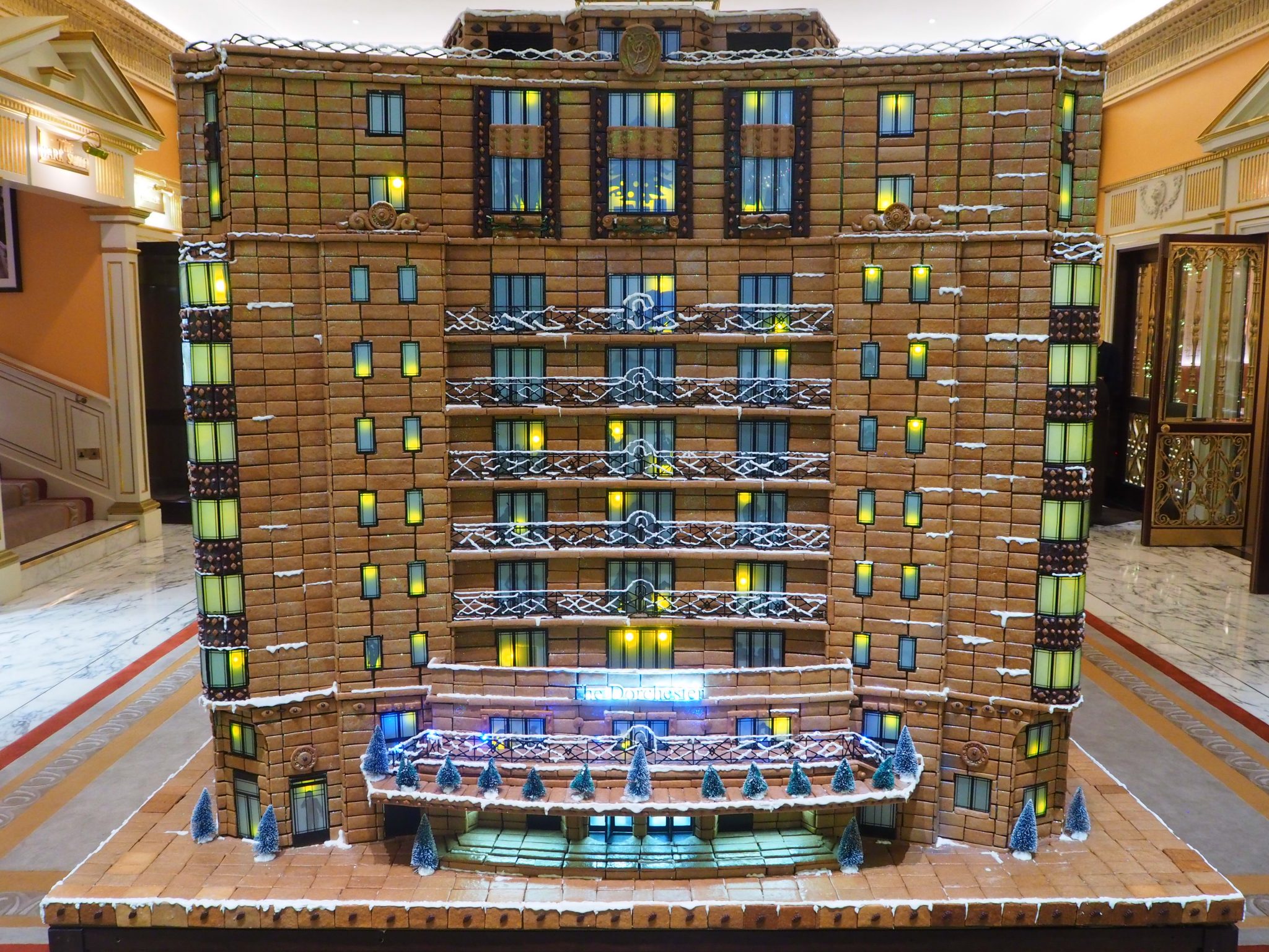 Executive chef Henry Brosi’s and his team crafted both the inside and the outside of the Dorchester hotel out of gingerbread. The structure weighs 150kg and is made of over 8000 pieces of gingerbread. Notice the tiny guests having afternoon tea in the second picture below? Make sure to take a good look at this masterpiece if you visit the hotel during the festive period.