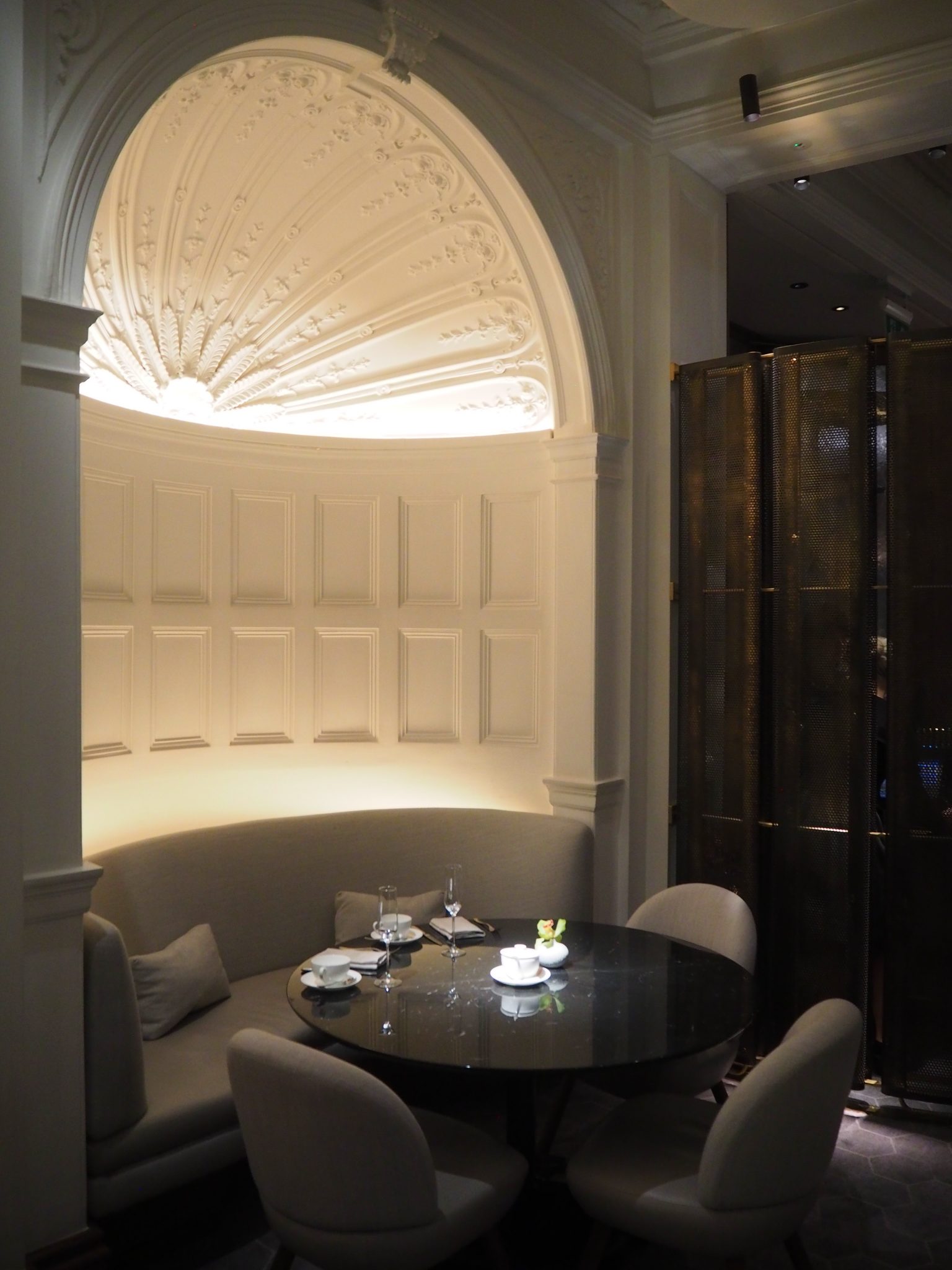 Afternoon tea is served in the Jean-Georges at the Connaught restaurant, named in honour of the eponymous chef Jean-Georges Vongerichten.