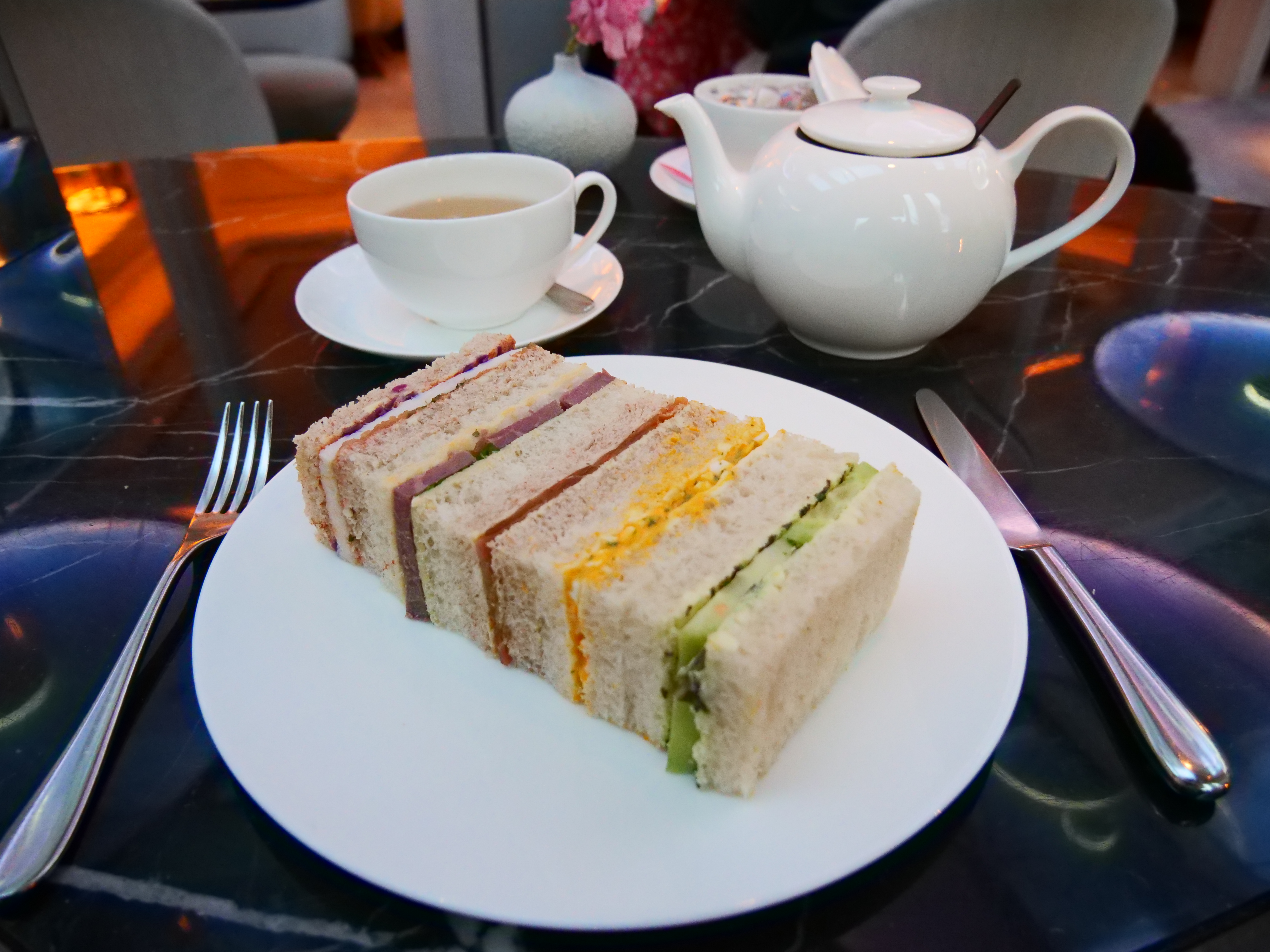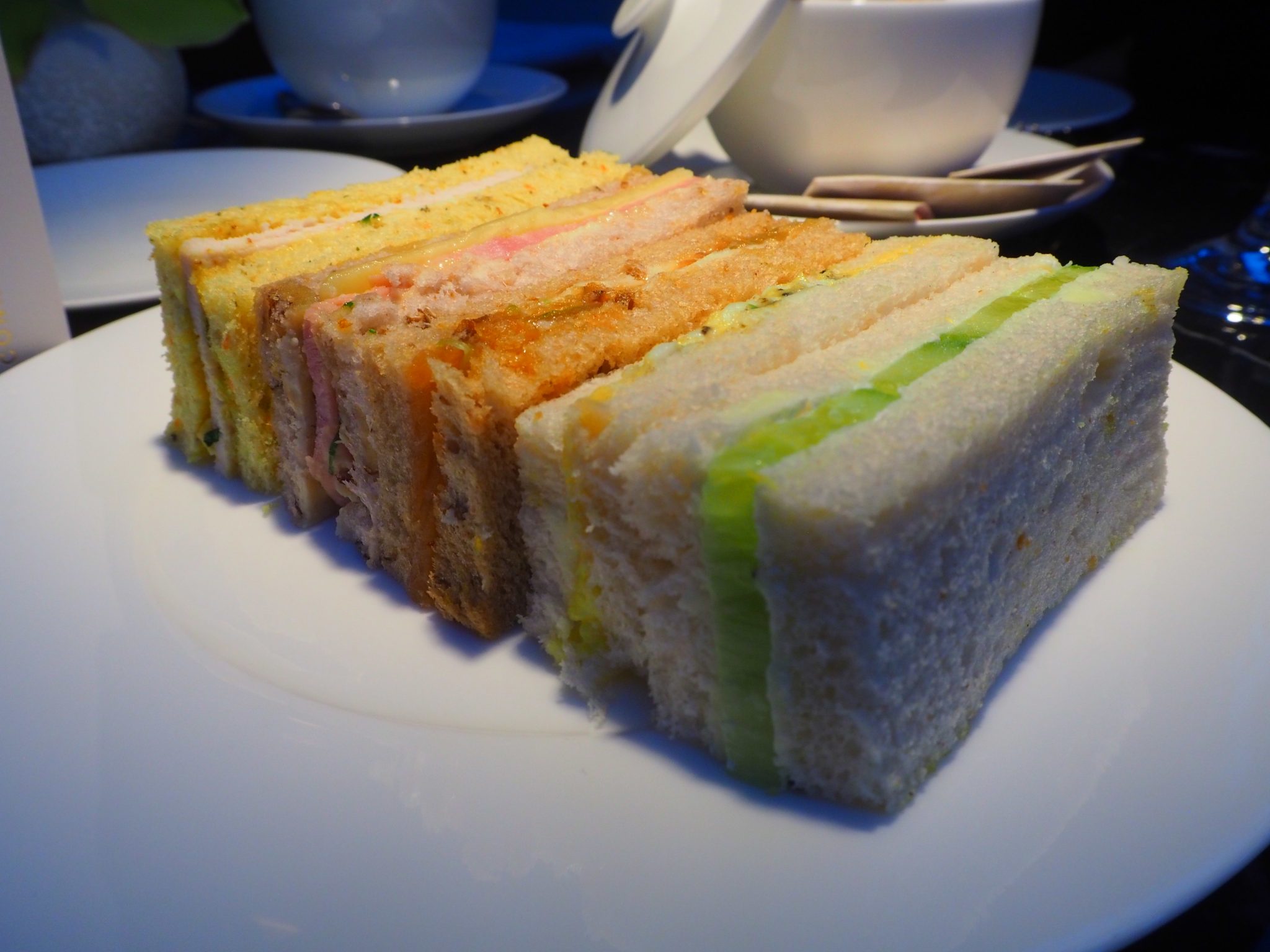 The afternoon tea starts with five delicious sandwiches: