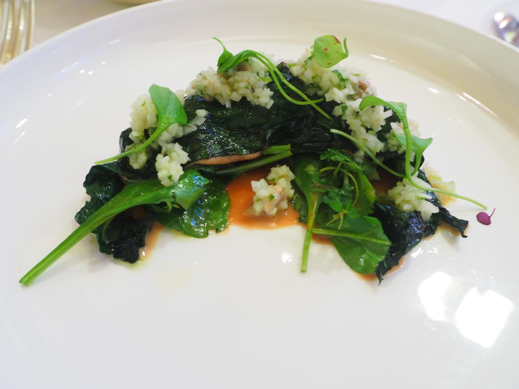 • Kale with sea lettuce, duck liver & Gillardeau oyster
