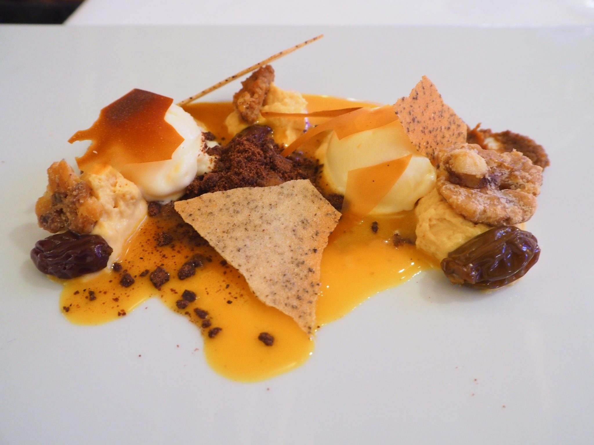 • Rum with caramel crème fraîche, walnut & sea buckthorn (à la carte) ♥