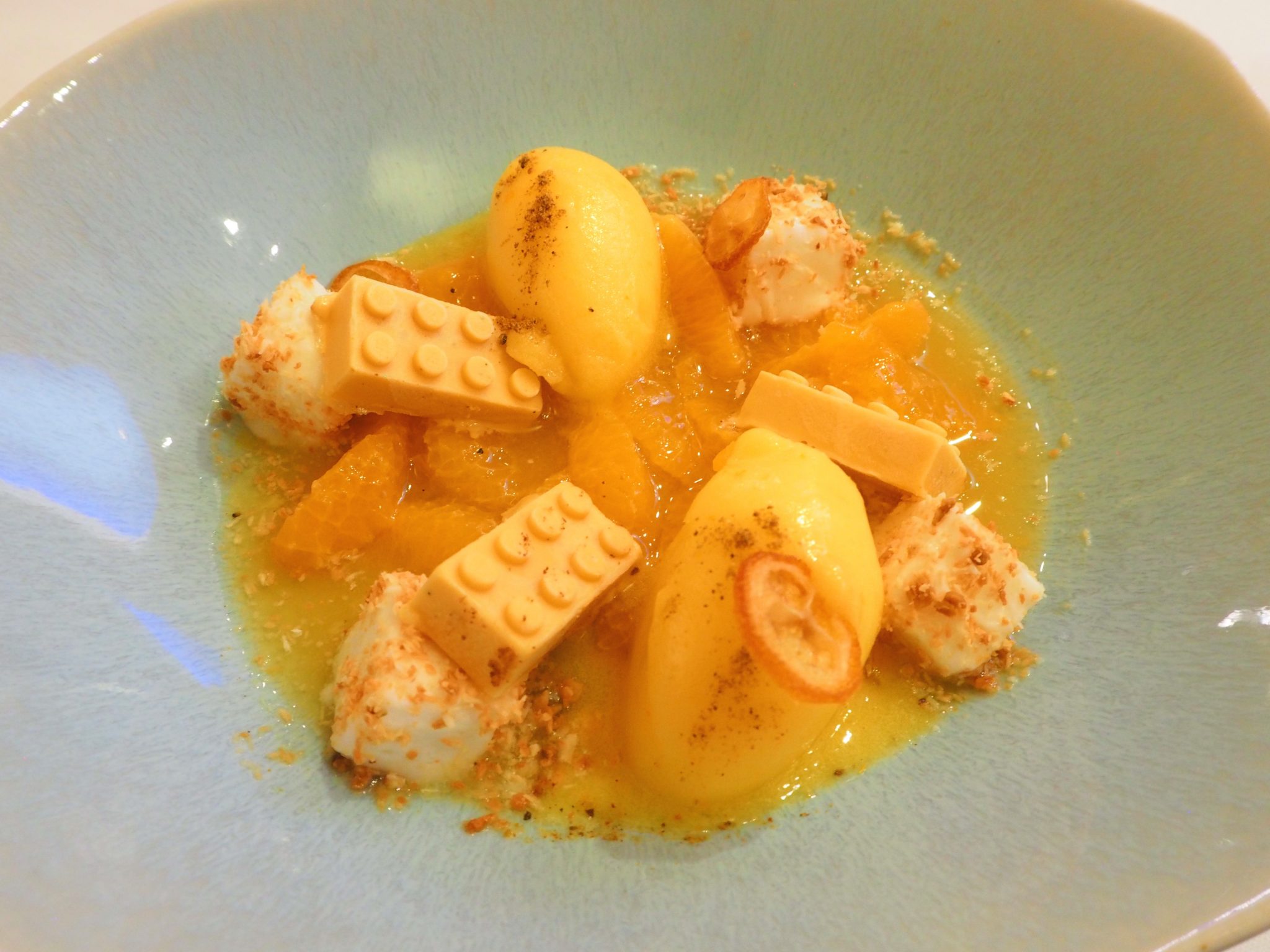 Our waiter Rejhan strongly recommended the tangerine and I agree with him: It’s one of the best desserts I have had in a while. The spiced chocolate Lego bricks rejoiced both the kid and the foodie in me!