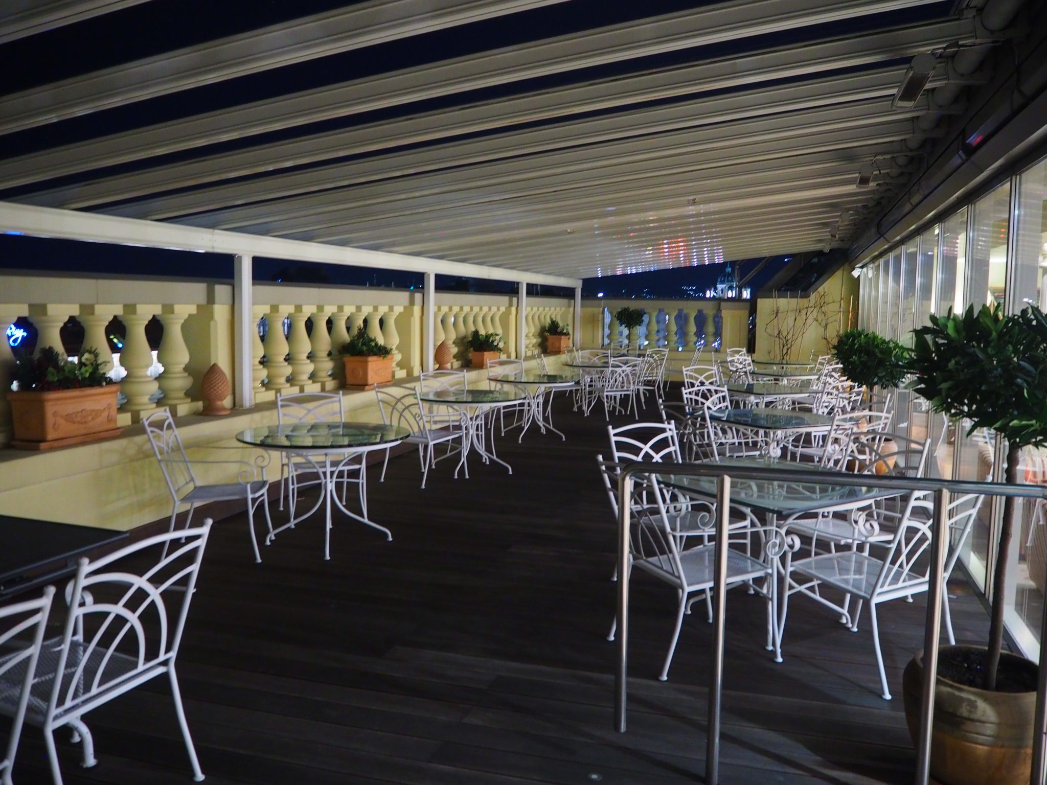 There is also a terrace opened to the restaurant’s clientèle in warmer weather. The view is quite limited due to the safety barriers but it is well worth the experience.