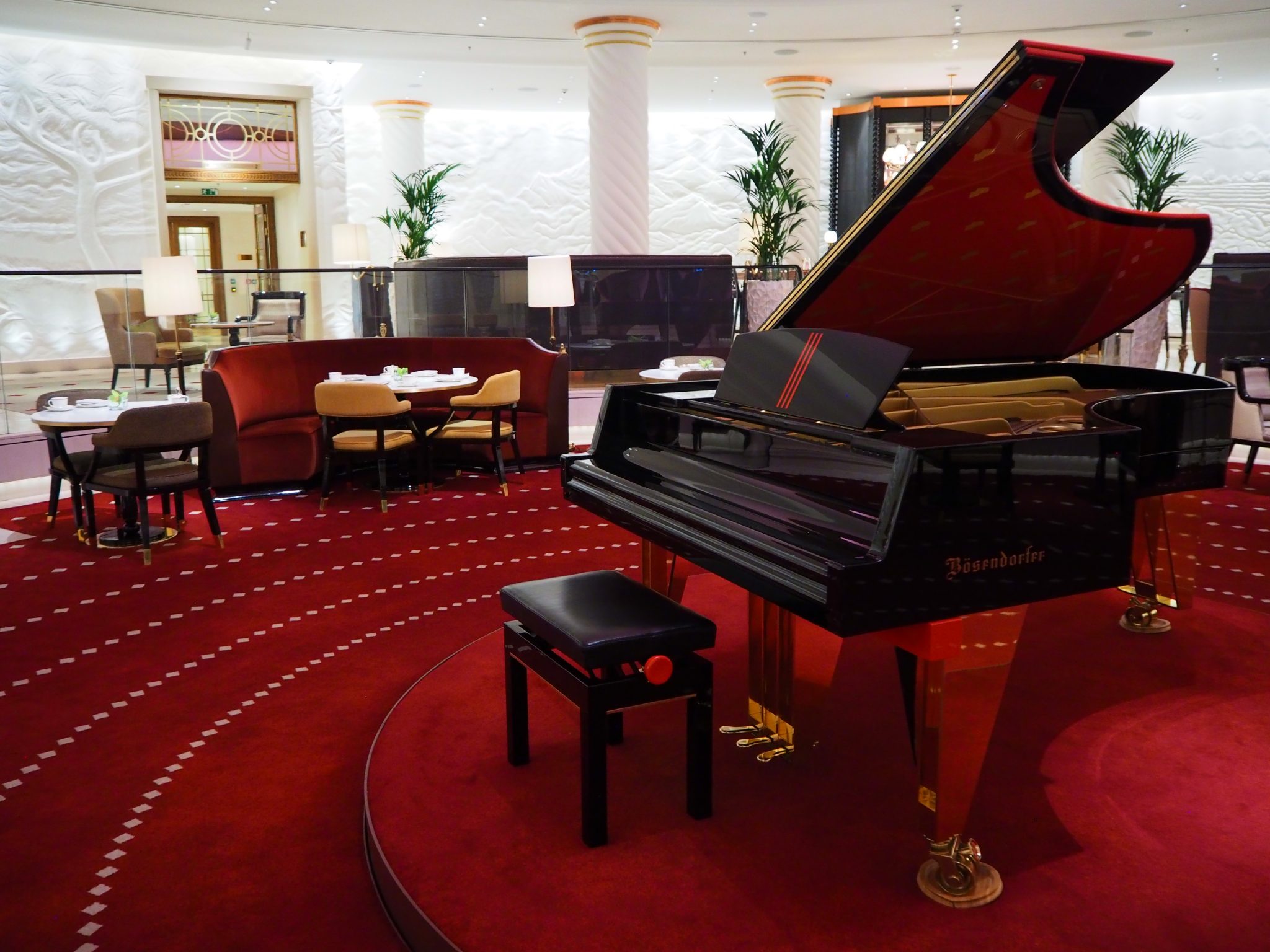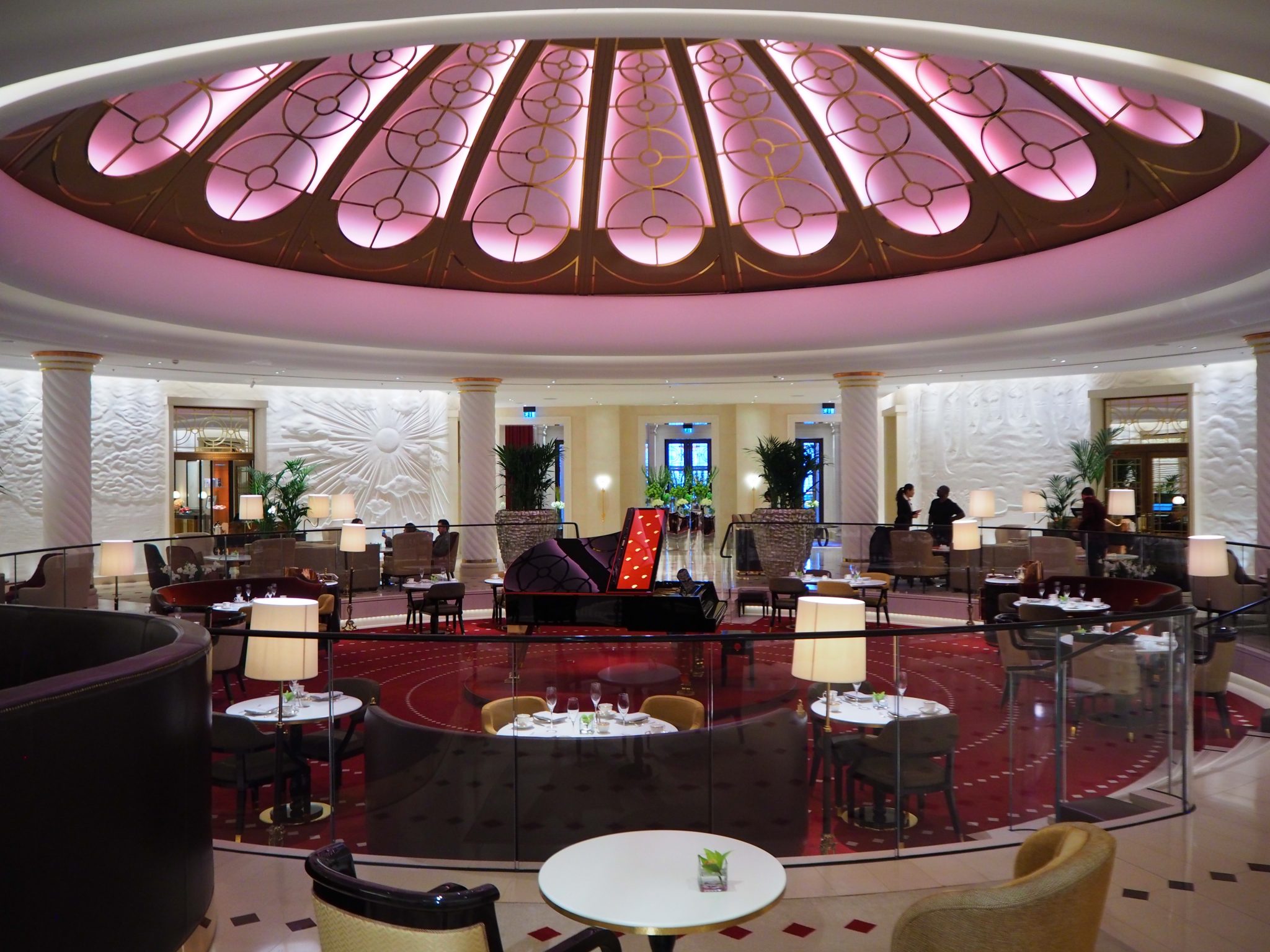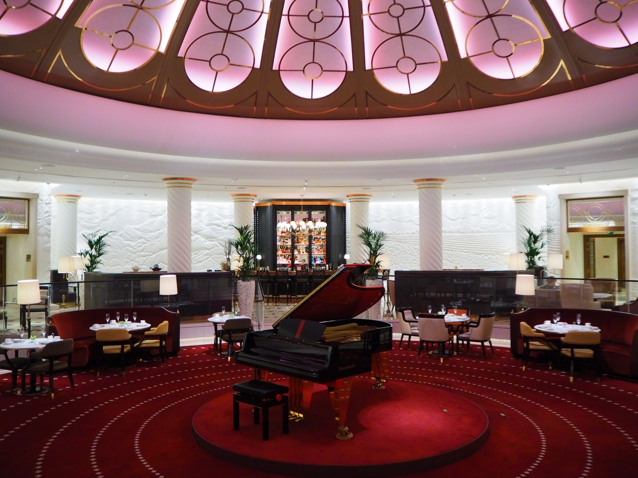 The Rotunda Lounge is a stunning room with a dome-shaped ceiling and white walls featuring motifs to symbolise the four elements. The atmosphere is evocative of the 1920s: art-déco style, colour contrasts, Jazz music…
