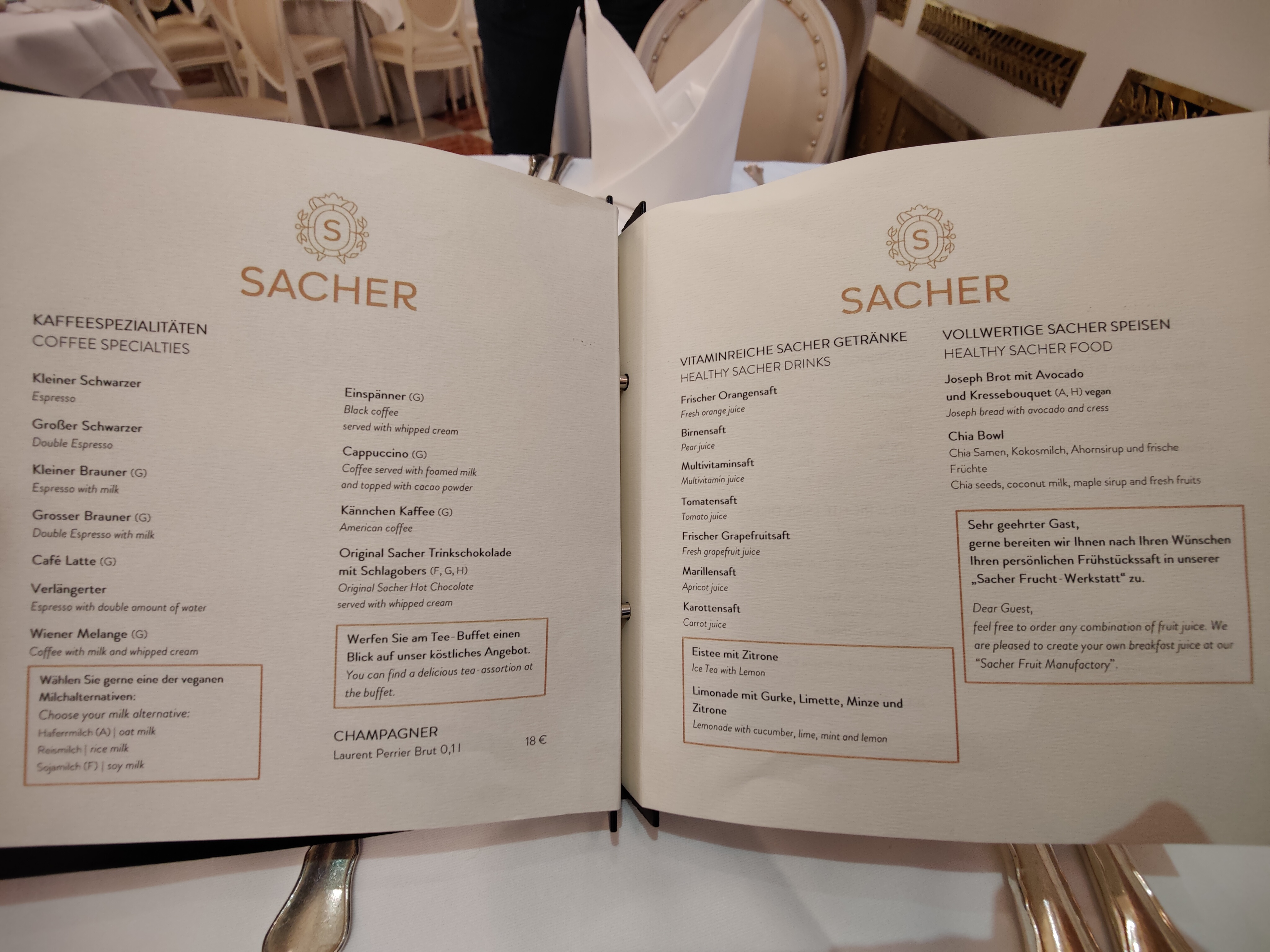 Below are some pictures of the Sacher Vienna’s breakfast menu: