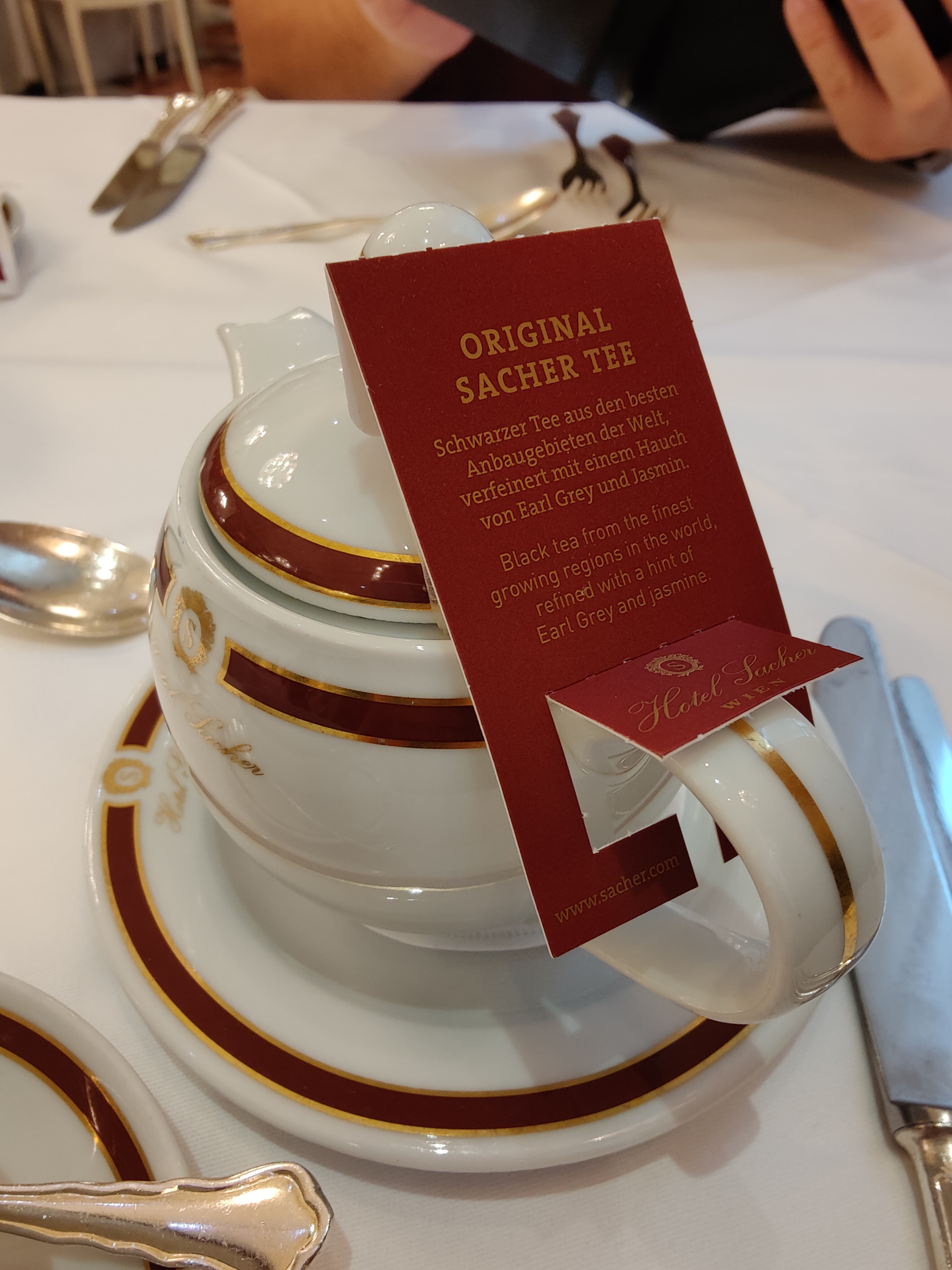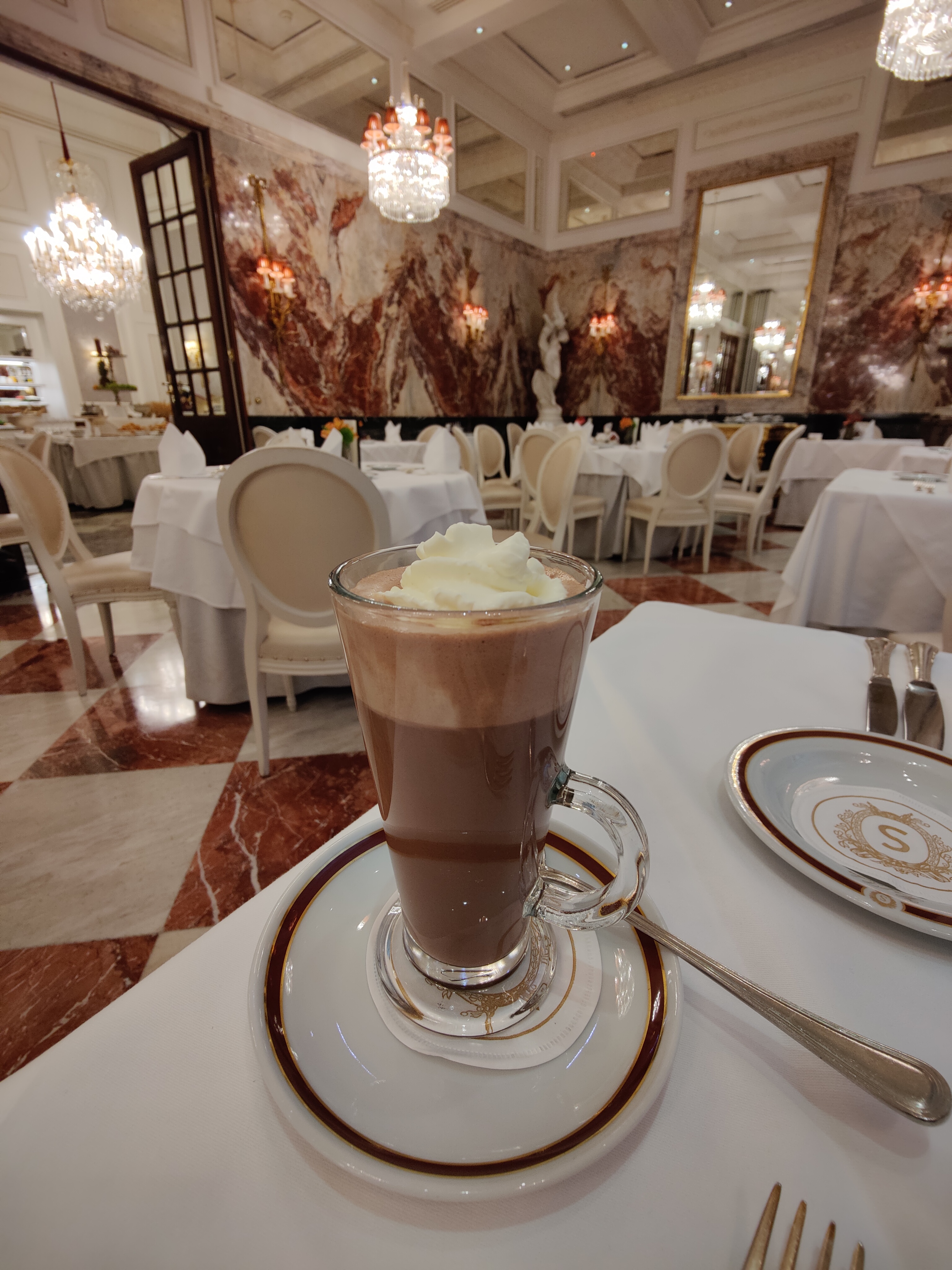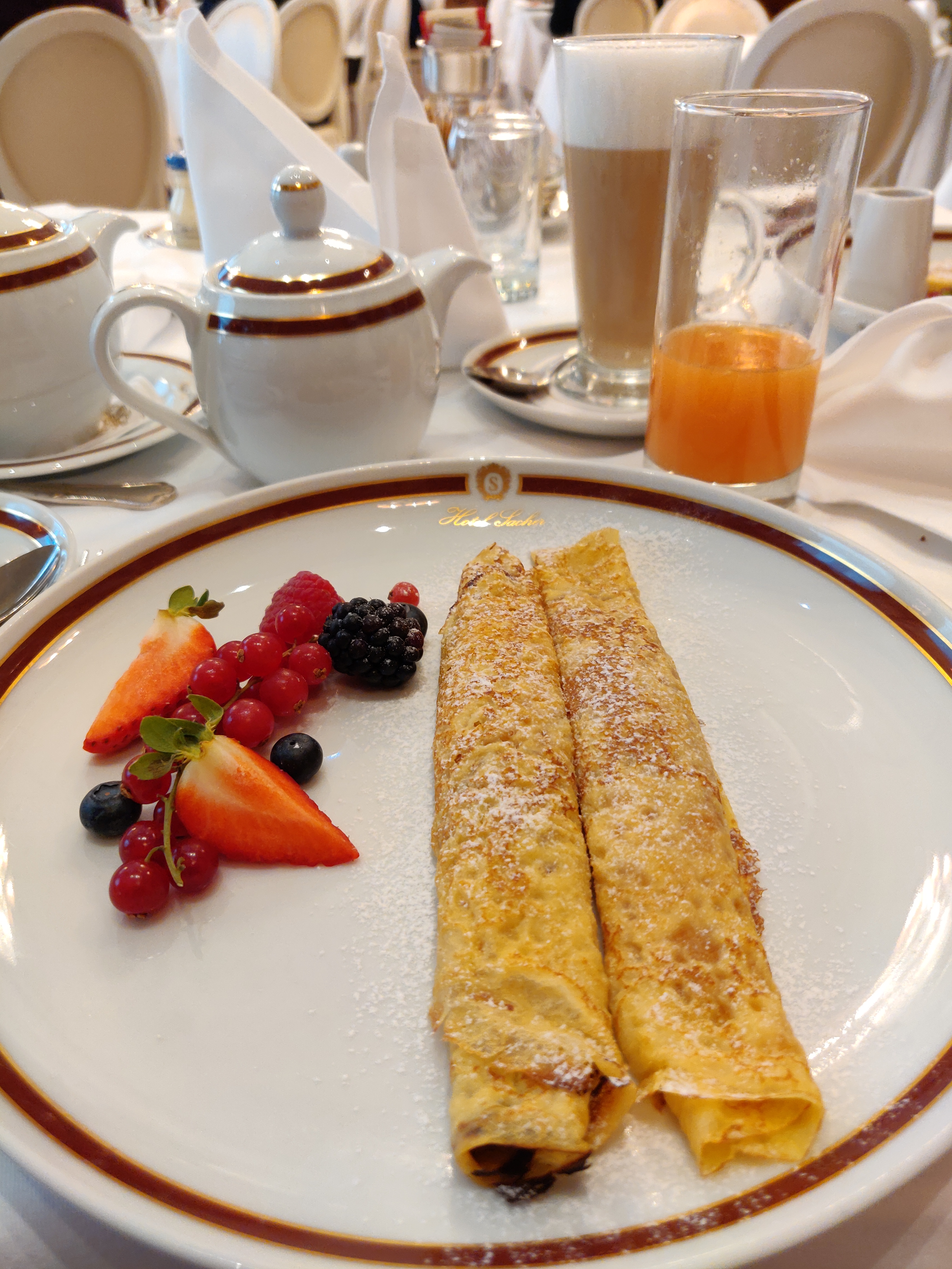 The Sacher breakfast is very generous beverages-wise, both for hot and cold drinks. There are many teas and coffees to choose from, as well as the delicious Sacher Hot Chocolate topped with cream.