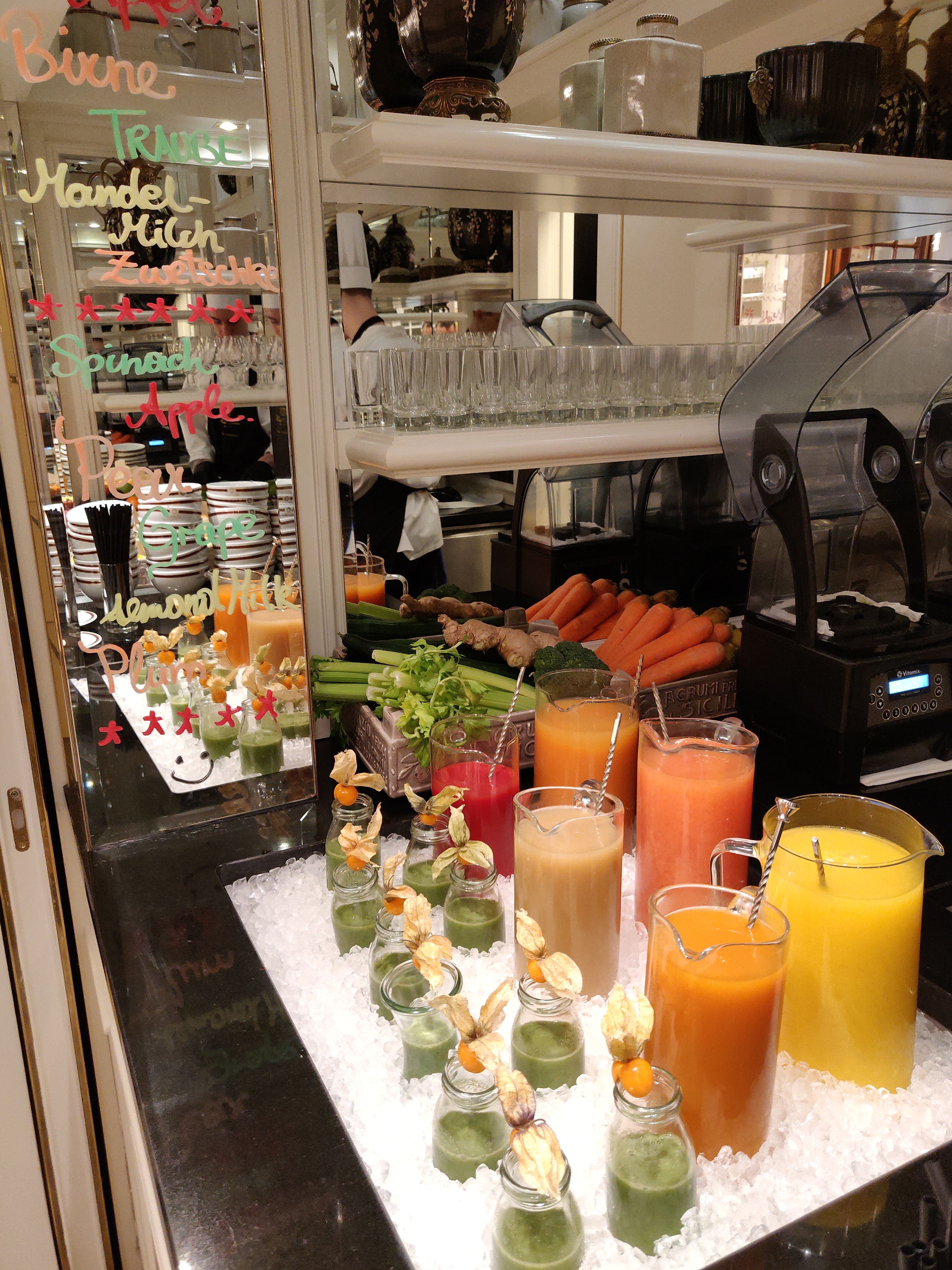 That may be my favourite part of the Sacher breakfast: the juice stand or “Sacher Fruit Manufactury” is heaven on earth for fans of freshly squeezed juices. The Sacher staff will also happily serve you any juice cocktail you have in mind using the ingredients on display, leaving you with dozens of possibilities.
