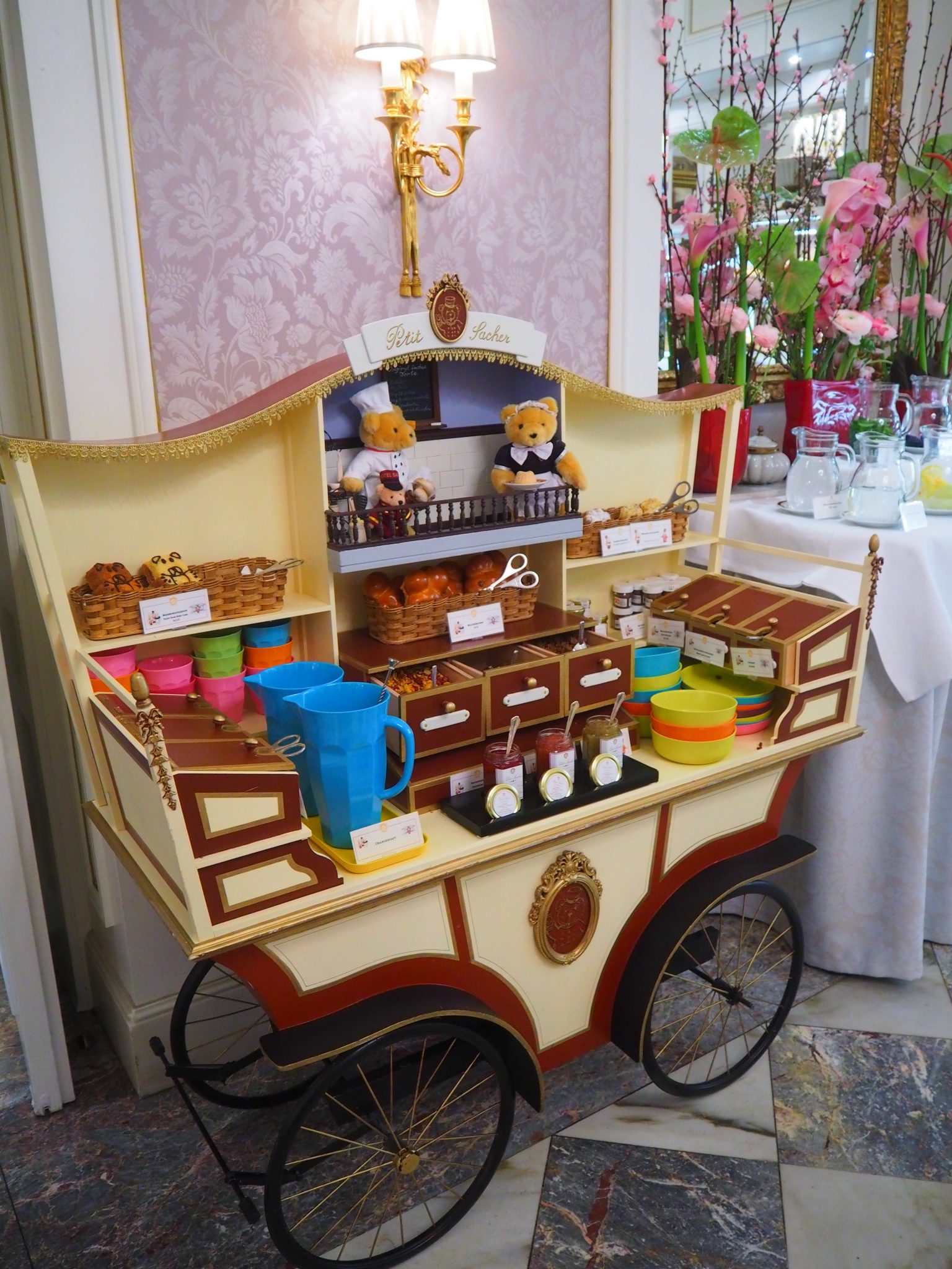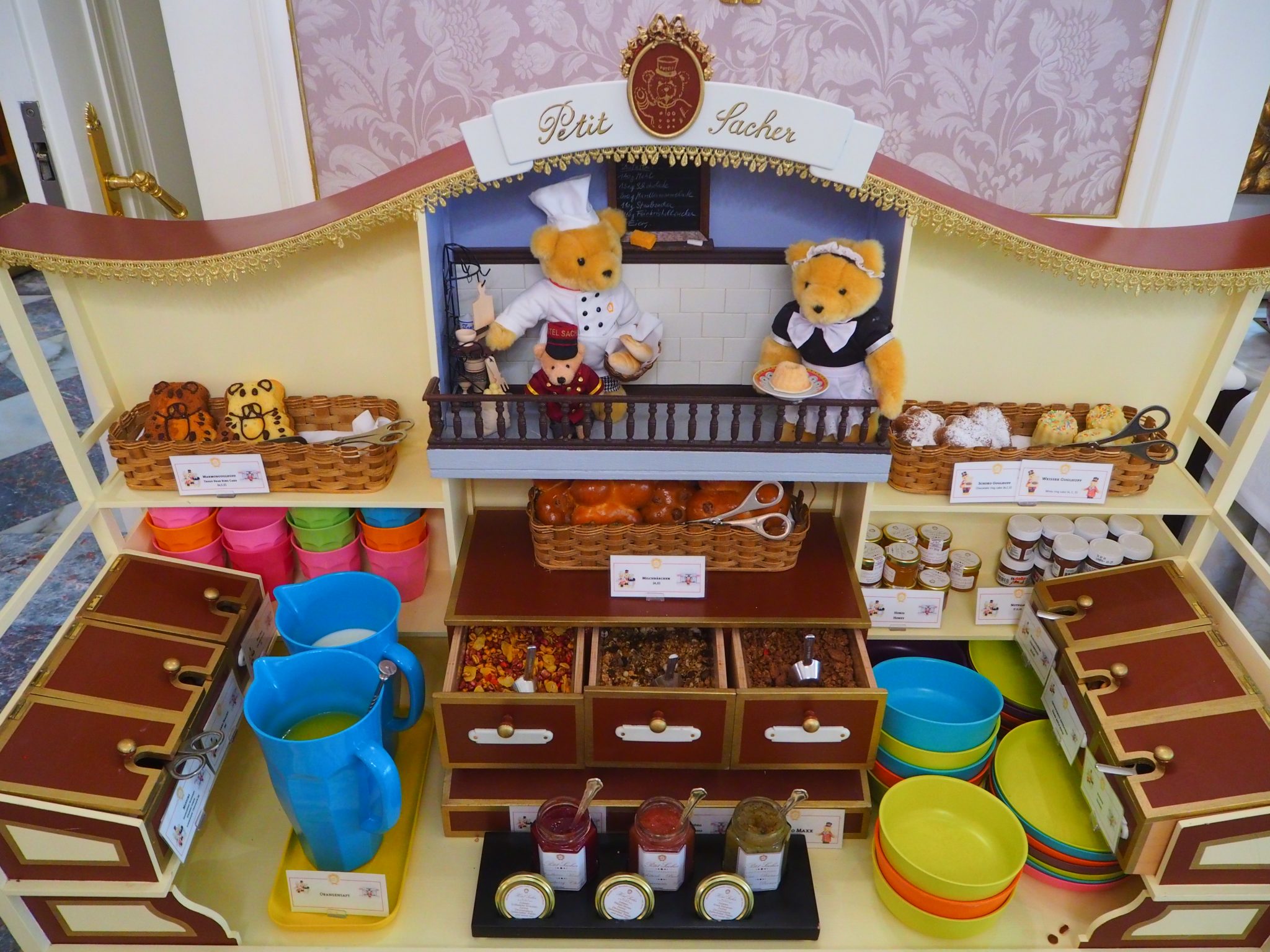 Kids (and big kids) will love the “Petit Sacher” trolley: cereals, nuts, orange juice and the most gorgeous biscuits you’ve ever seen at breakfast.