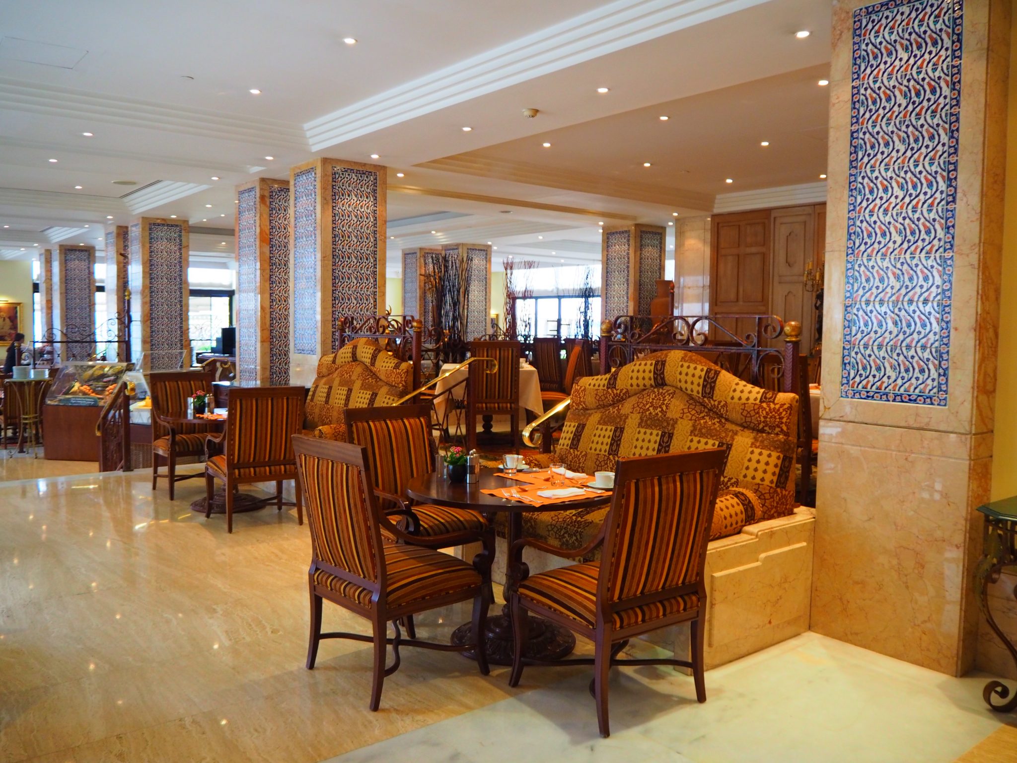 The Kempinski Istanbul is divided into two parts: A modern building, where the afternoon tea is served, and the historical Cirajan Palace building, a former Ottoman Palace which is now the most prestigious wedding venue in Turkey.
