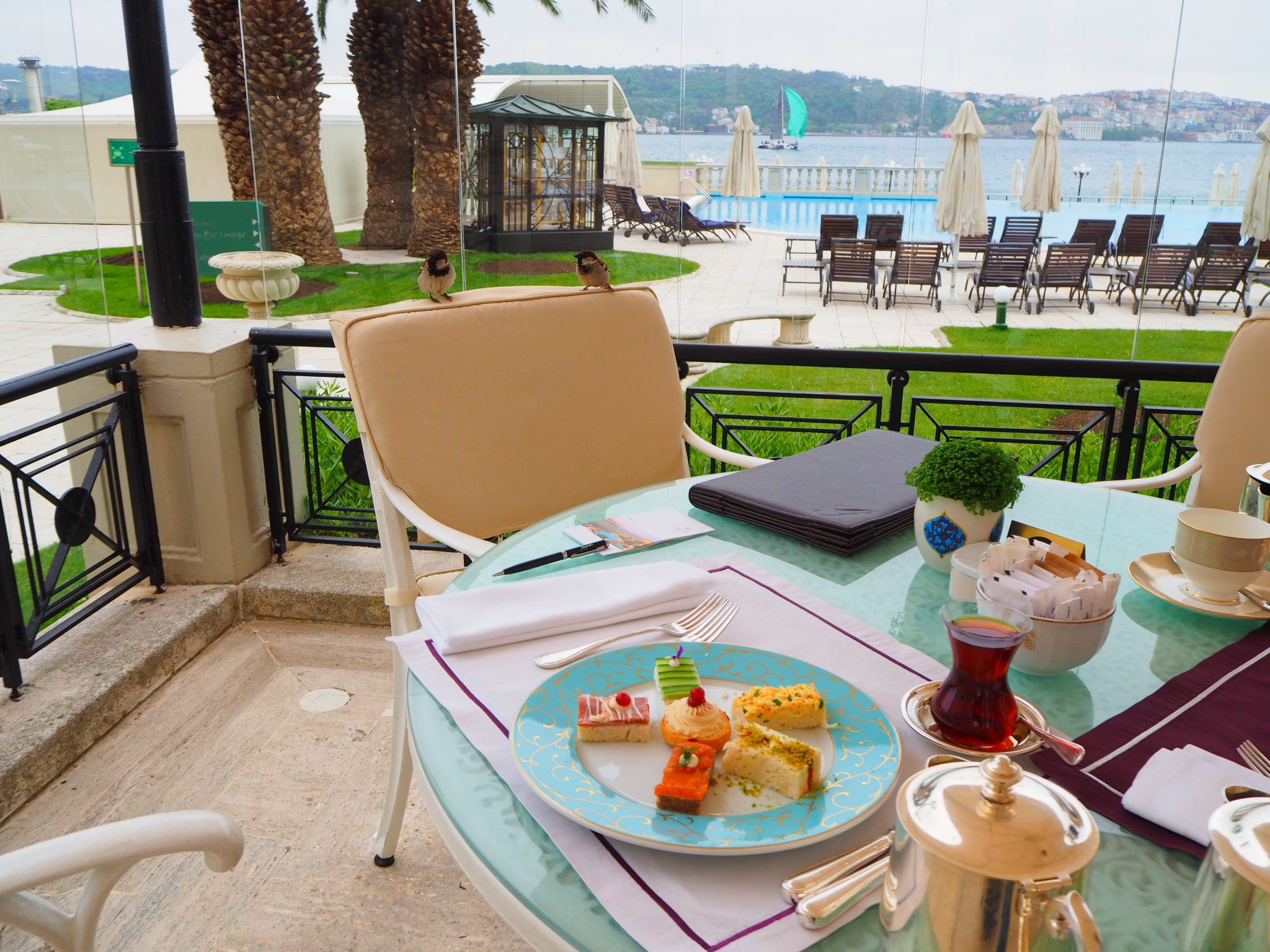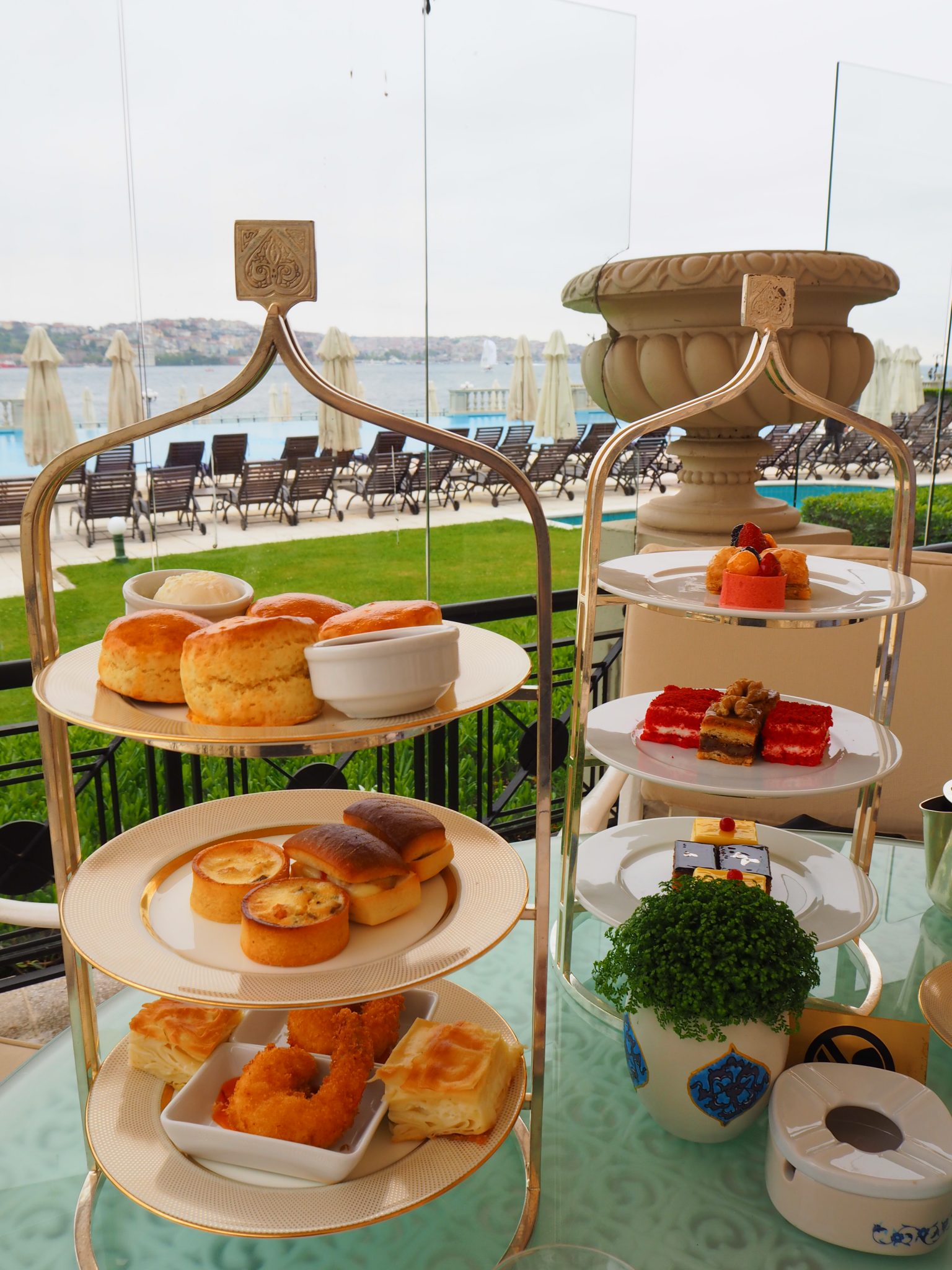 I’ll say it straight away: having afternoon tea at the Çırağan Palace Kempinski Istanbul is a much better experience when the weather allows you to sit on the terrace, as is the case at the Four Seasons Istanbul at the Bosphorus.