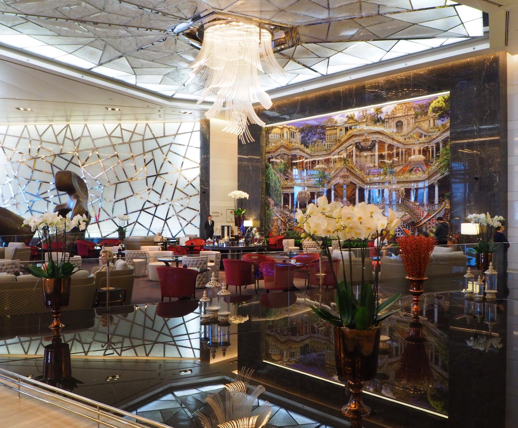 The Gazebo Lounge is located on the hotel’s ground floor. If you’re keen on impressive statues and flowers reflected in the water, you’ll love this place.