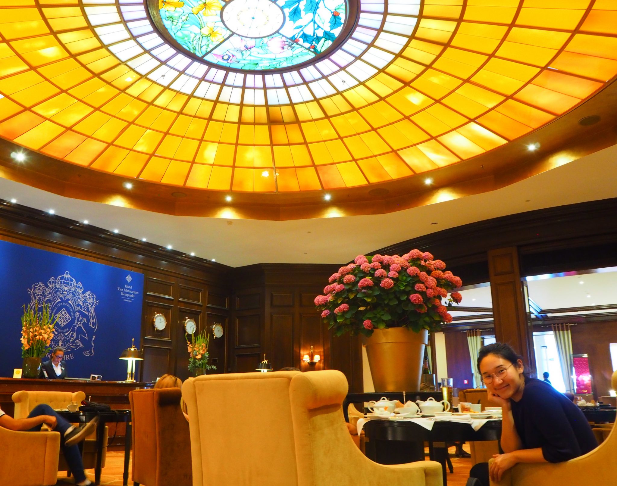 The hotel’s grand entrance leads directly into the Jahreszeiten Lobby Lounge, where the afternoon tea is served.