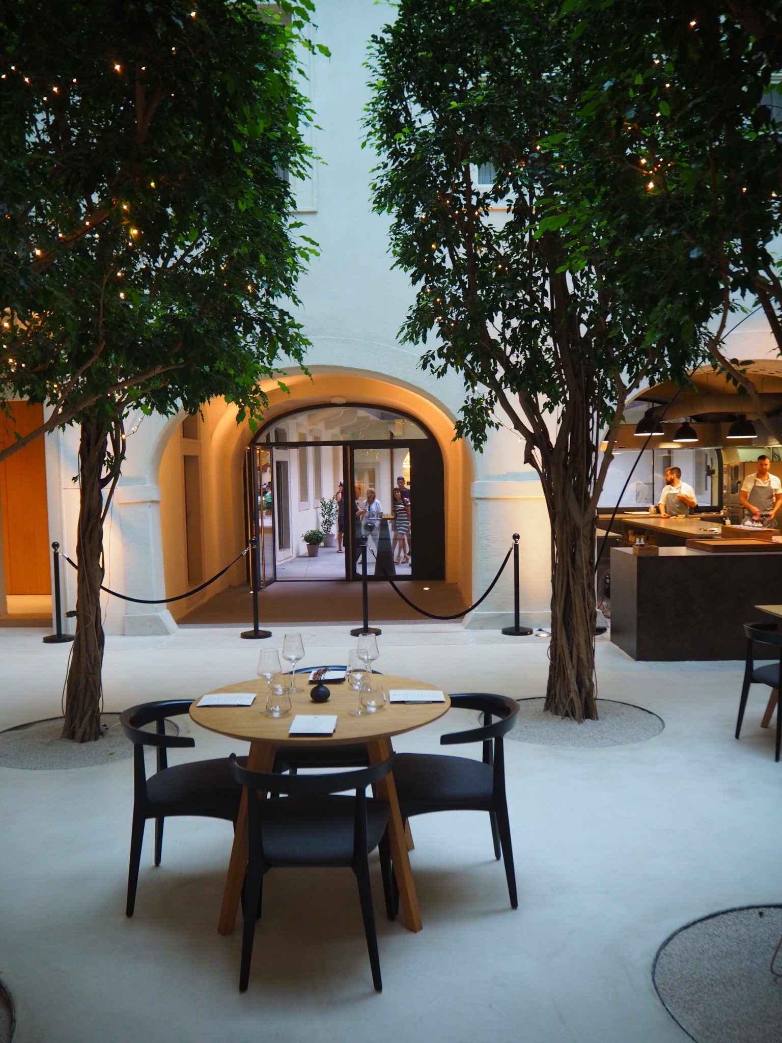 The Fach restaurant is located in a courtyard with an atrium. I recommend asking for a table at the centre of the restaurant in order to appreciate the natural light and the trees. The venue is even more stunning at night.