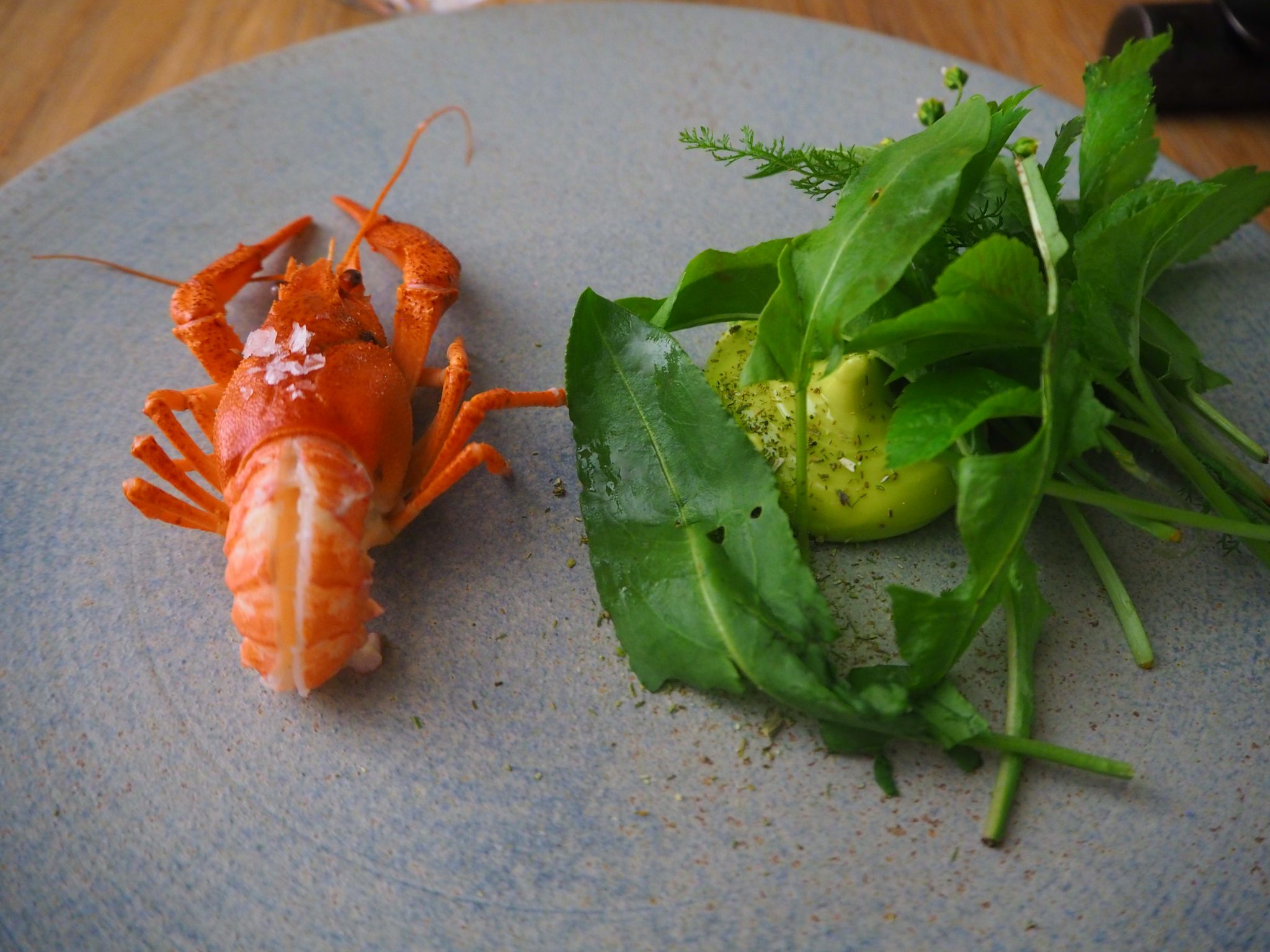 • Crayfish with “bouquet garni” and dill topped with wild berries vinegar