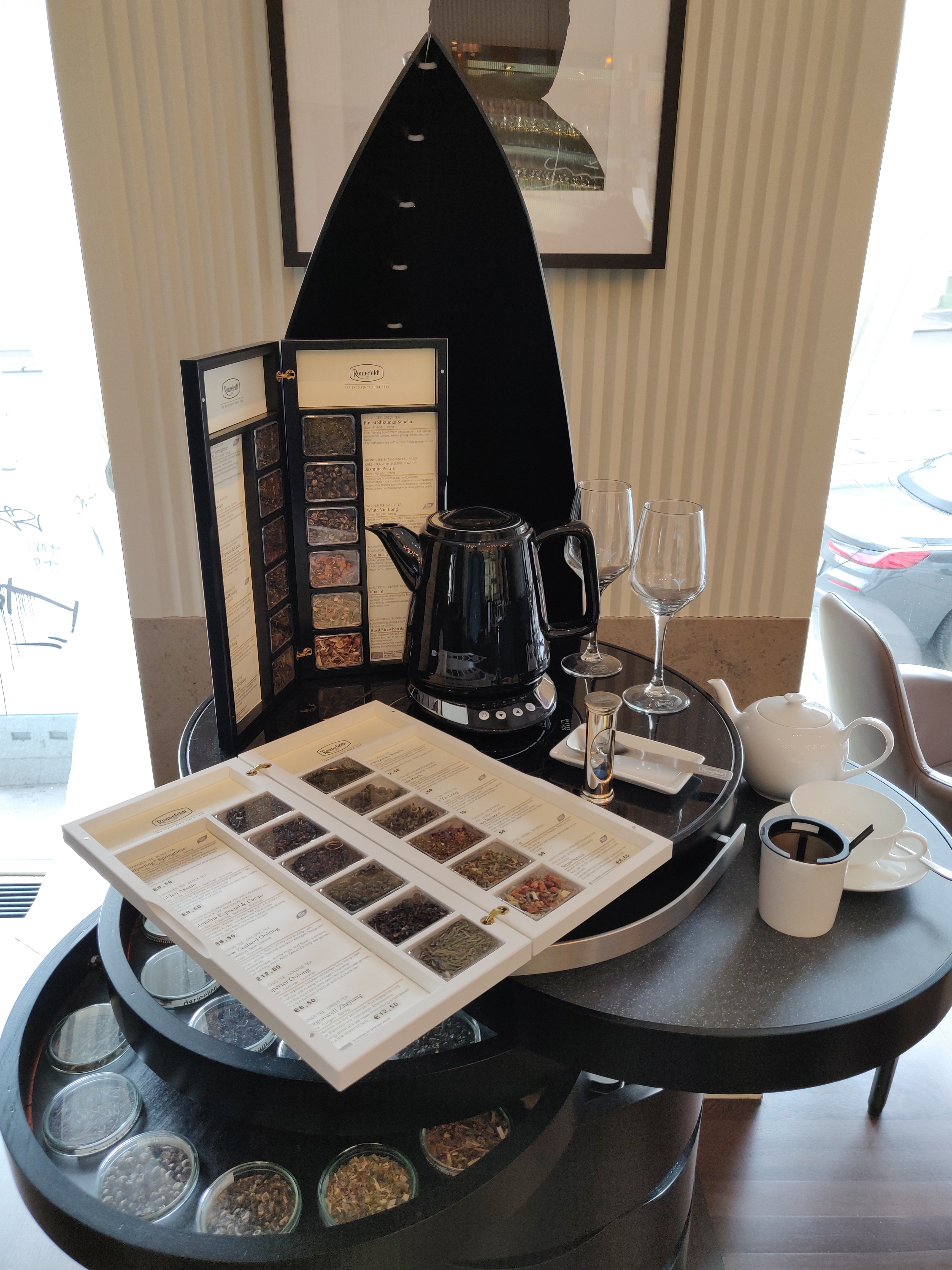 There are 14 Ronnefeldt teas and infusions to choose from, as well as the usual selection of coffees (espresso, latte…) and hot chocolate.