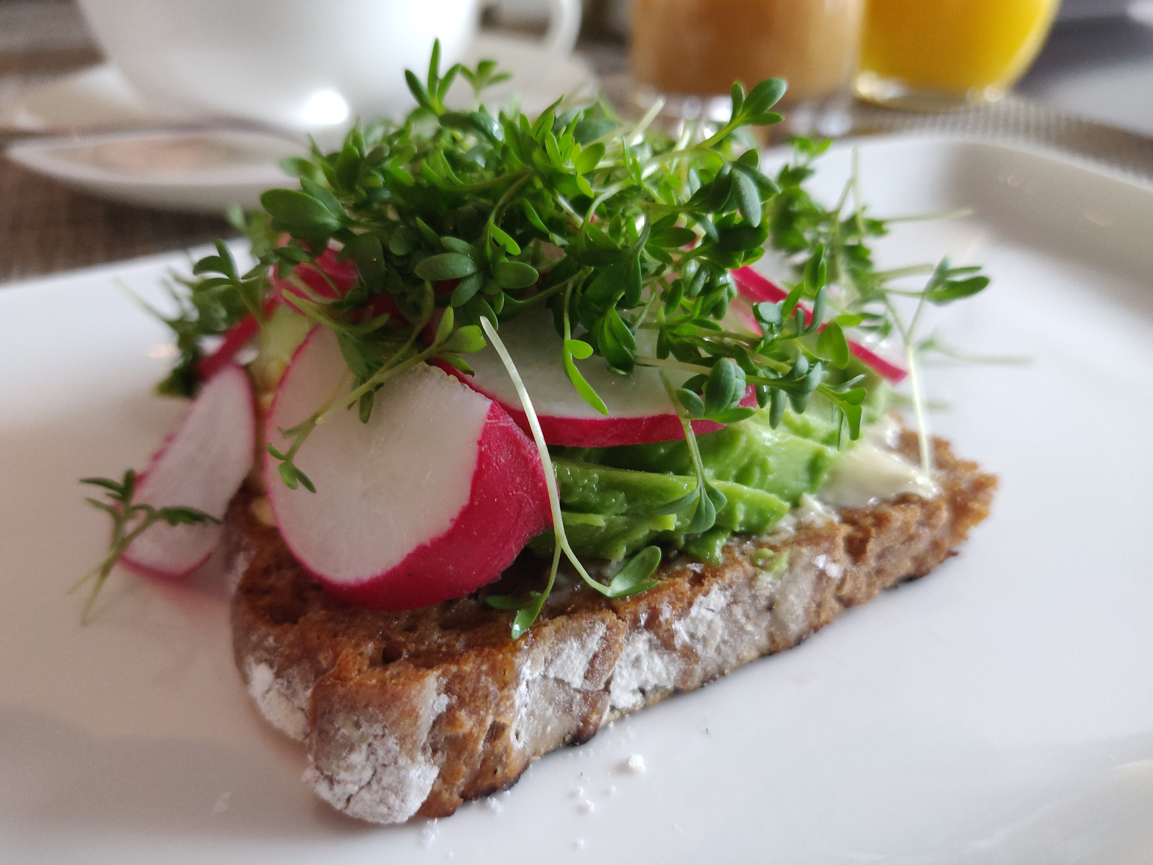 - Thursday – Rye bread topped with avocado, radish & cress: you can feel the healthy touch put in that one vegan option. It’s tasty but I still prefer the salmon & avocado toast.