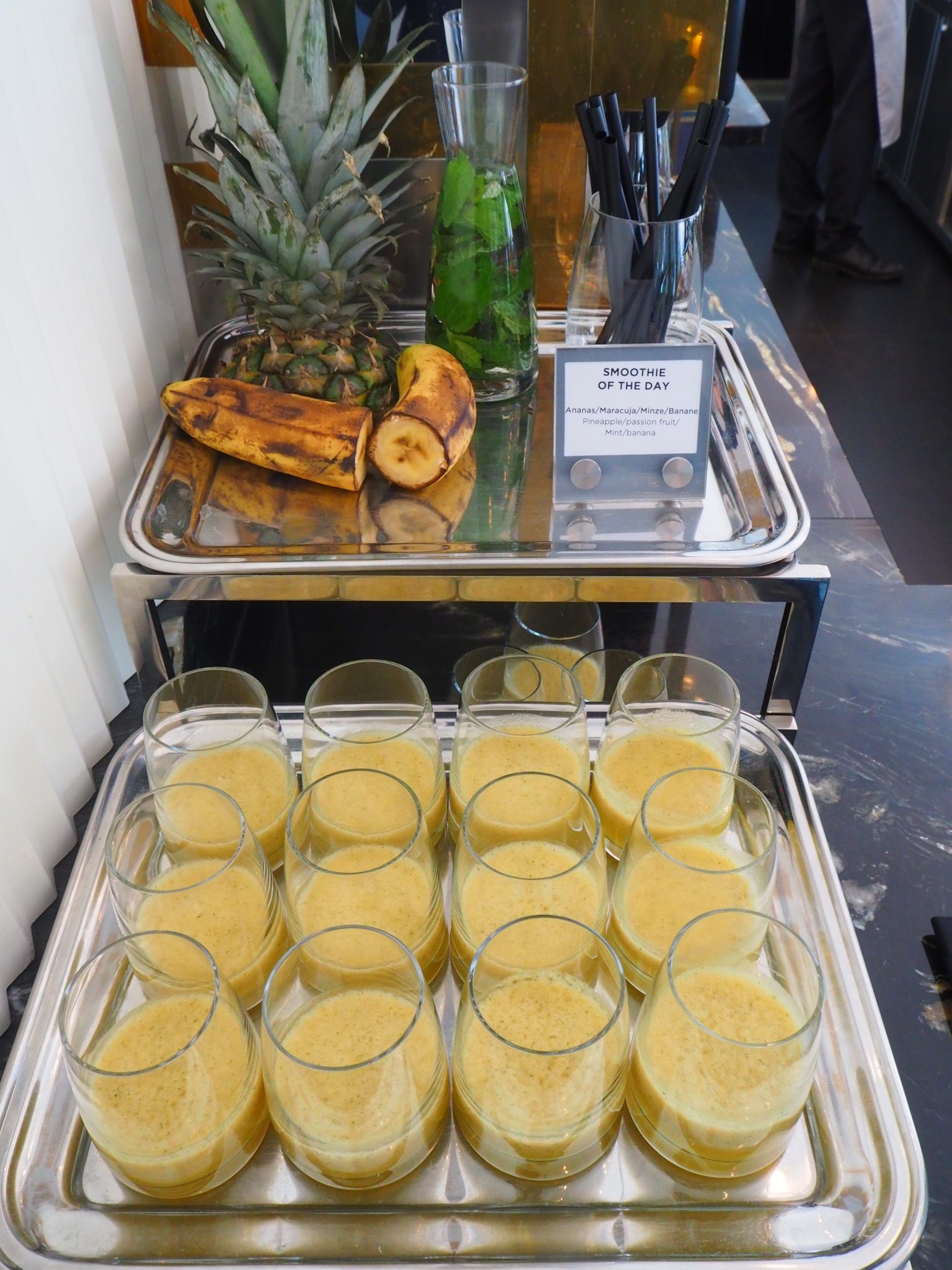 There are two/three freshly squeezed juices (orange, apple…) on offer, as well as one smoothie of the day (two variants in the pictures below. That’s a pretty solid offer too, though it’s not as good as some of the (pricier!) competition.