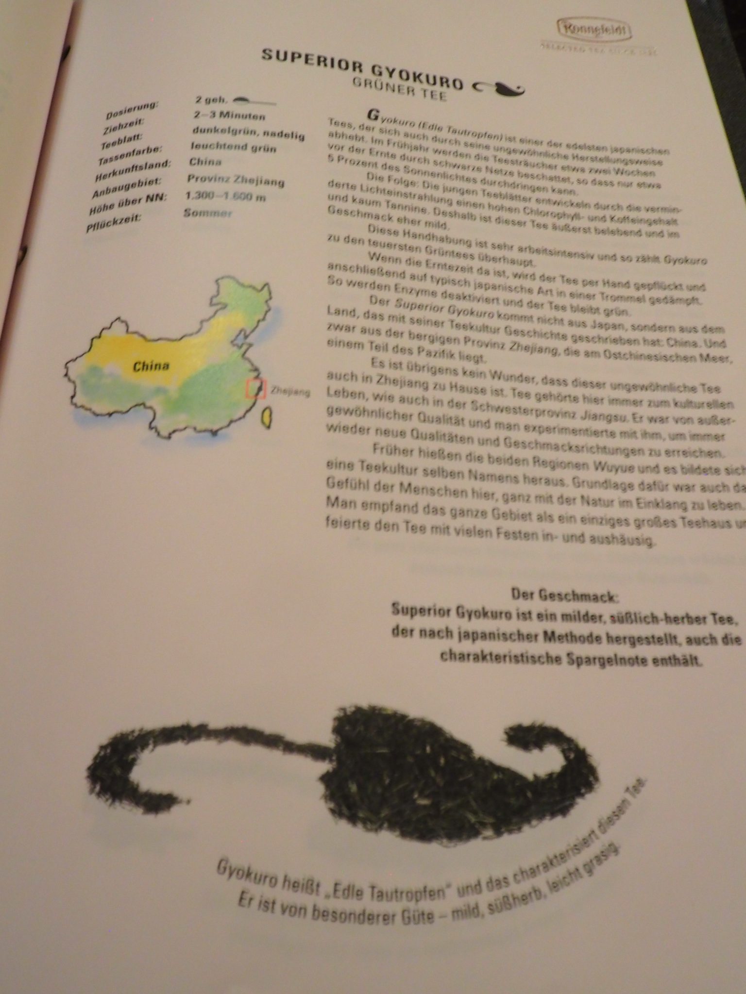 Brewing method: Brewed in a teapot brought to the table; infusion can be stopped with the help of an hourglass