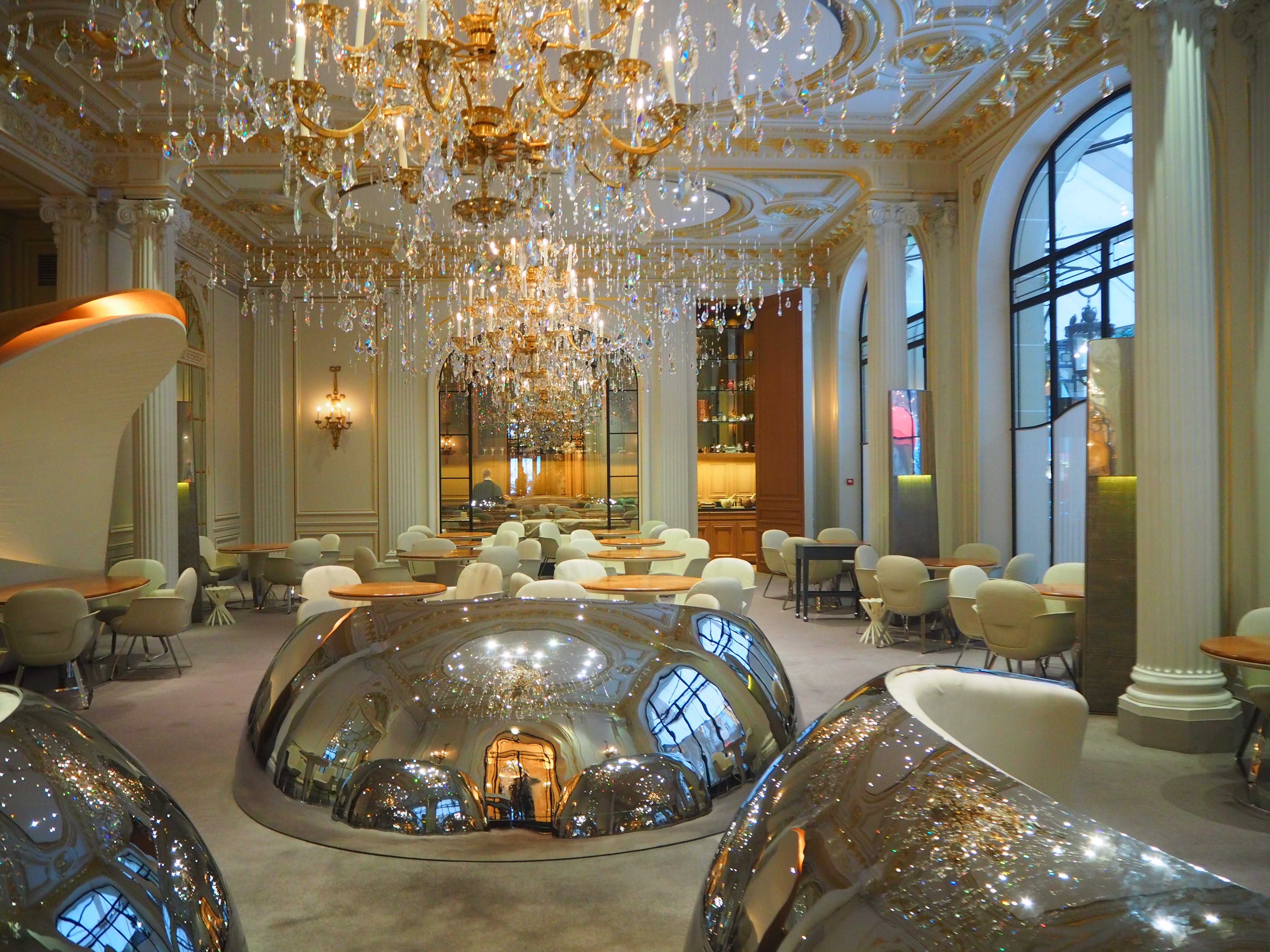 This palatial hotel is a perfect fit for the area, a place of “Haute Couture” designed to perfection. I recommend you to visit the Alain Ducasse restaurant, especially if you enjoy impressive interiors (third and fourth pictures below).