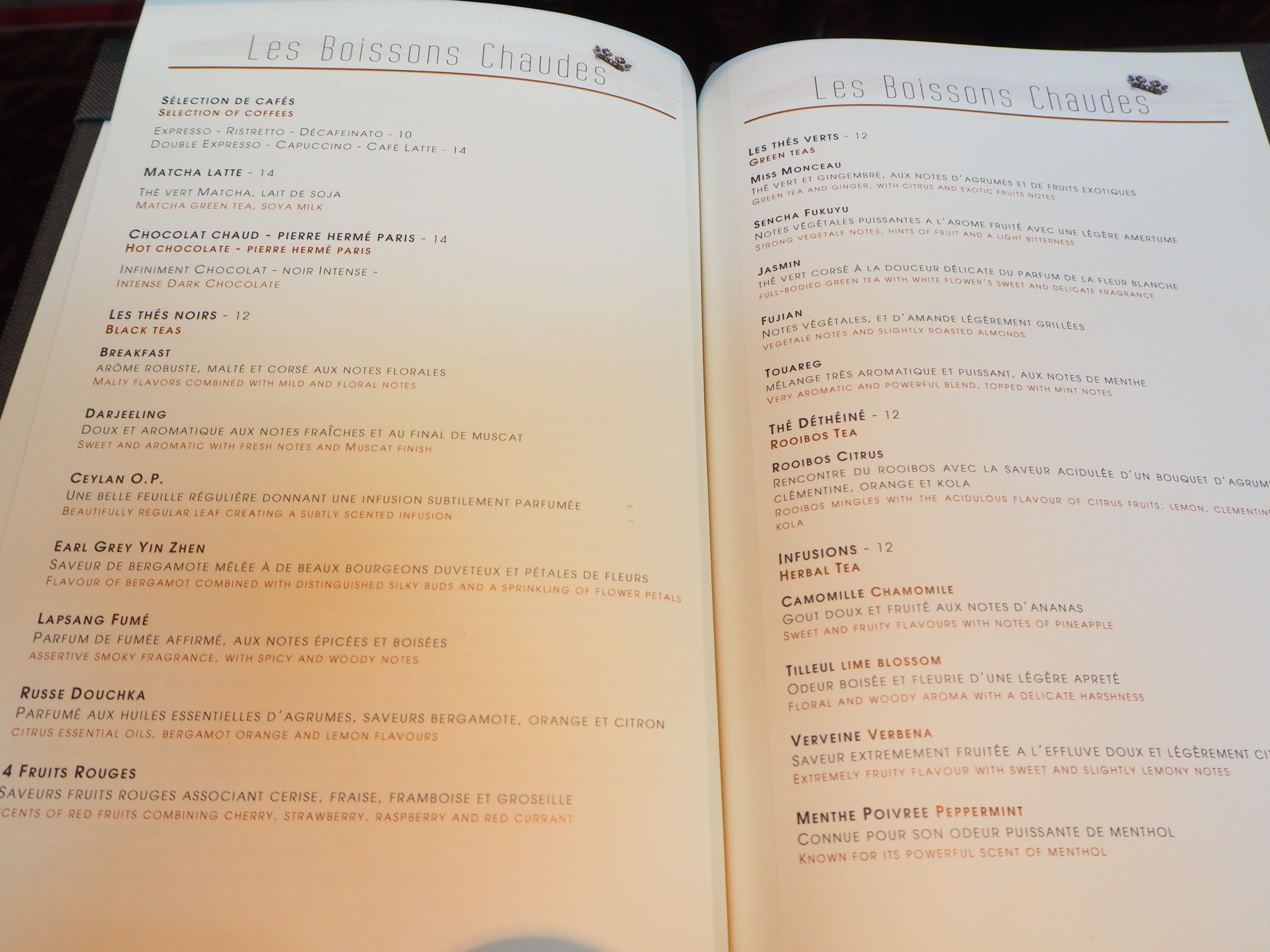 The Royal Monceau Raffles Paris afternoon tea is modestly named “The Royal Tea Time by Pierre Hermé”, a possible reference to its very generous pastry buffet that wouldn’t feel out of place at Versailles palace. Let’s see if it’s as good as the Peninsula.
