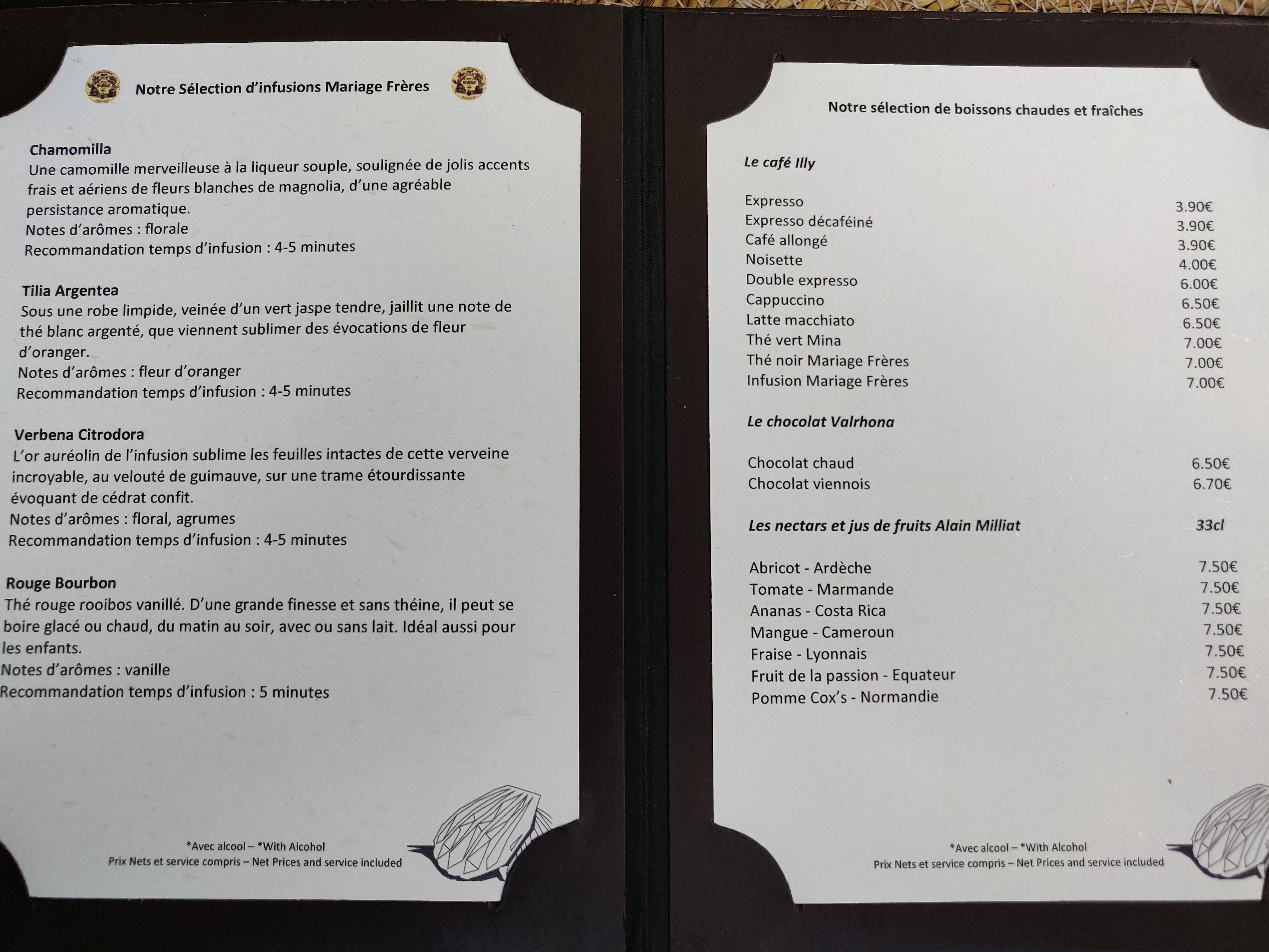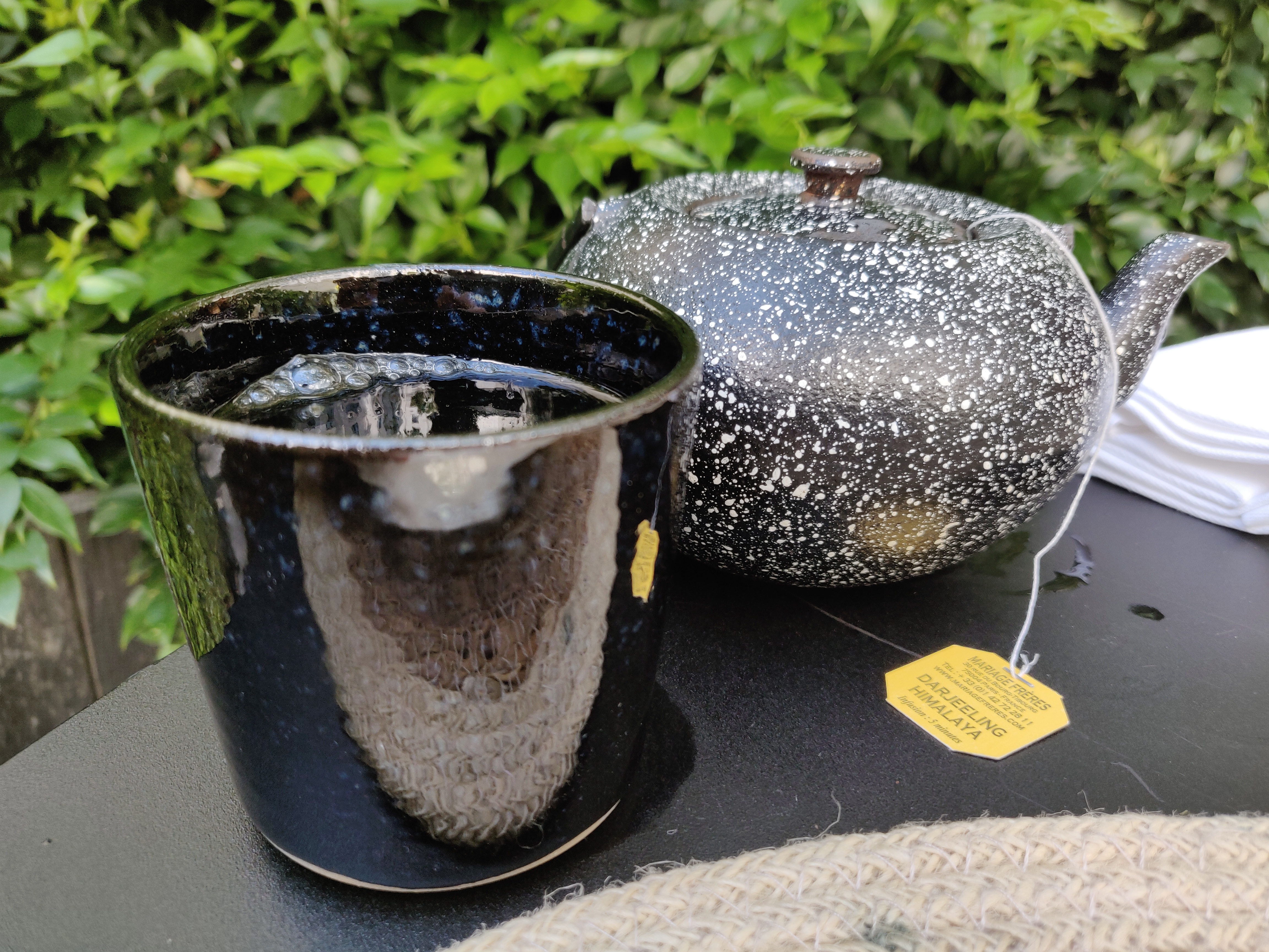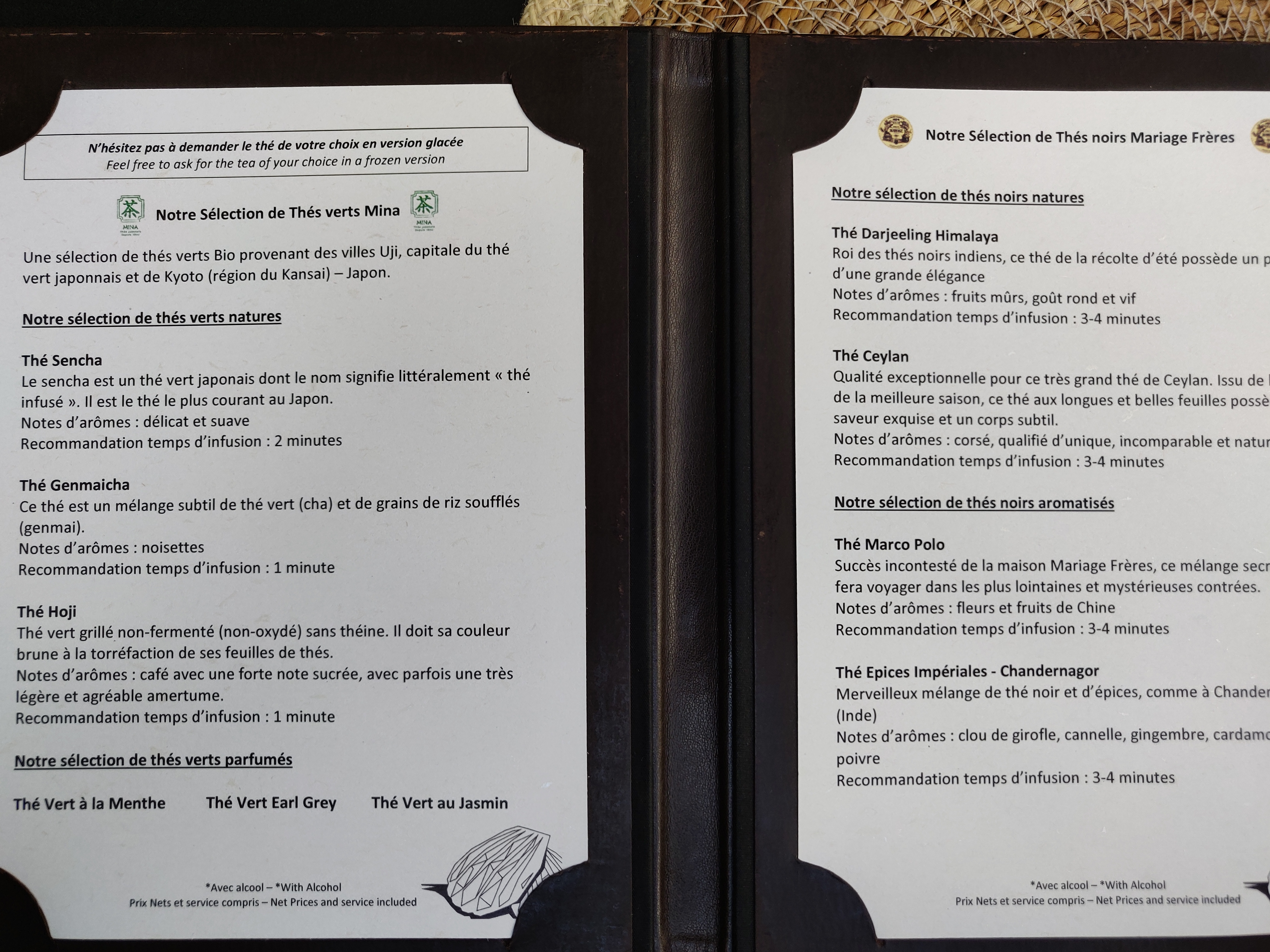 I’m normally very keen on the Mariages Frères Marco Polo tea but I suggest you go with the Sencha Green Tea from Mina: it’s excellent and loose-leaf, while the Mariages Frères teas are served in tea bags. The Darjeeling Himalaya was not strong enough, as the tea bg was too small for an entire teapot. ..