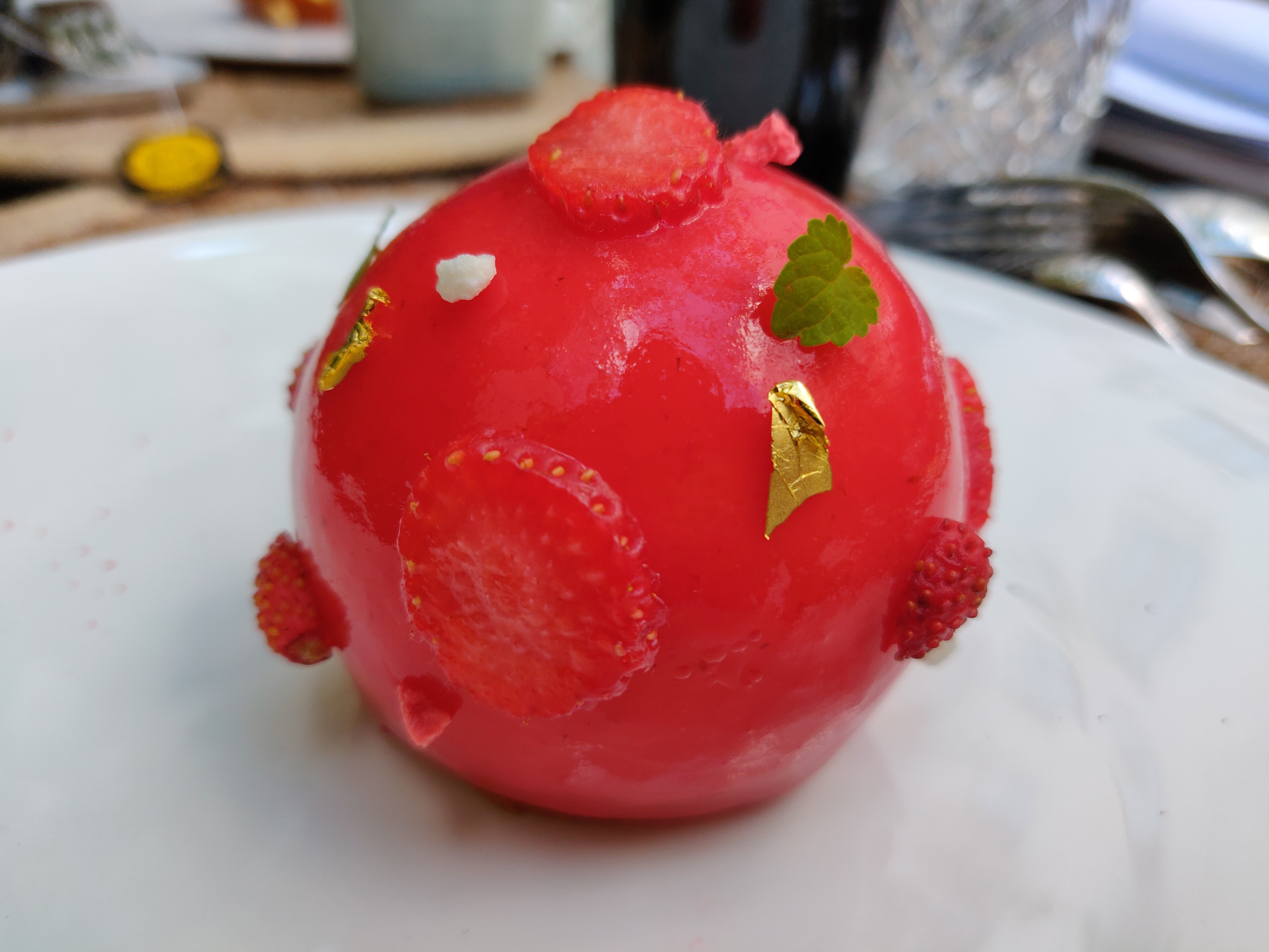 - Strawberry: Strawberry-white chocolate mousse with sage jelly; strawberry water, Kappa, white chocolate and Amaretto coating ♥
