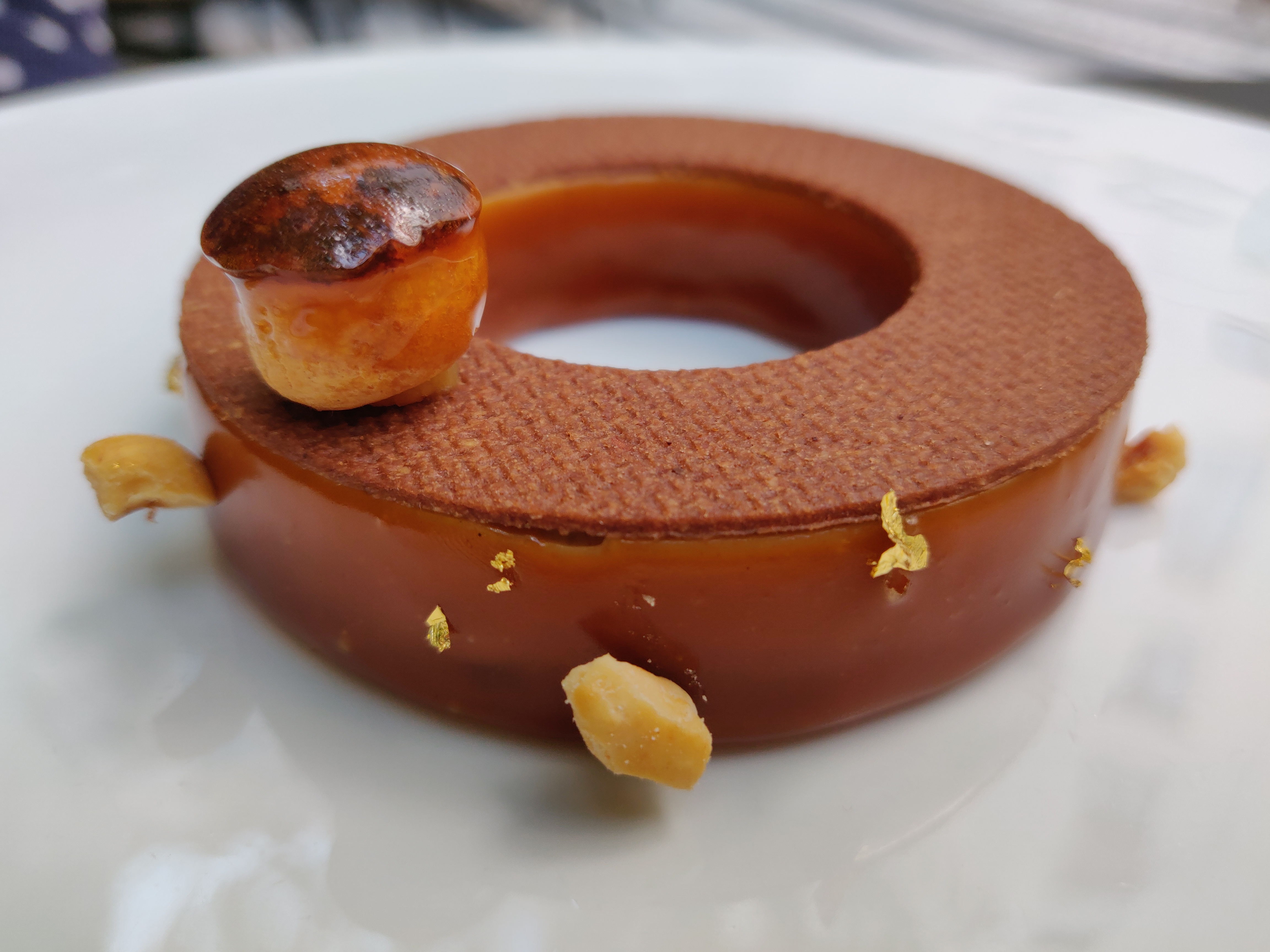 - Hazelnut: Praline-hazelnut crémeux, garnished with a nutty chou