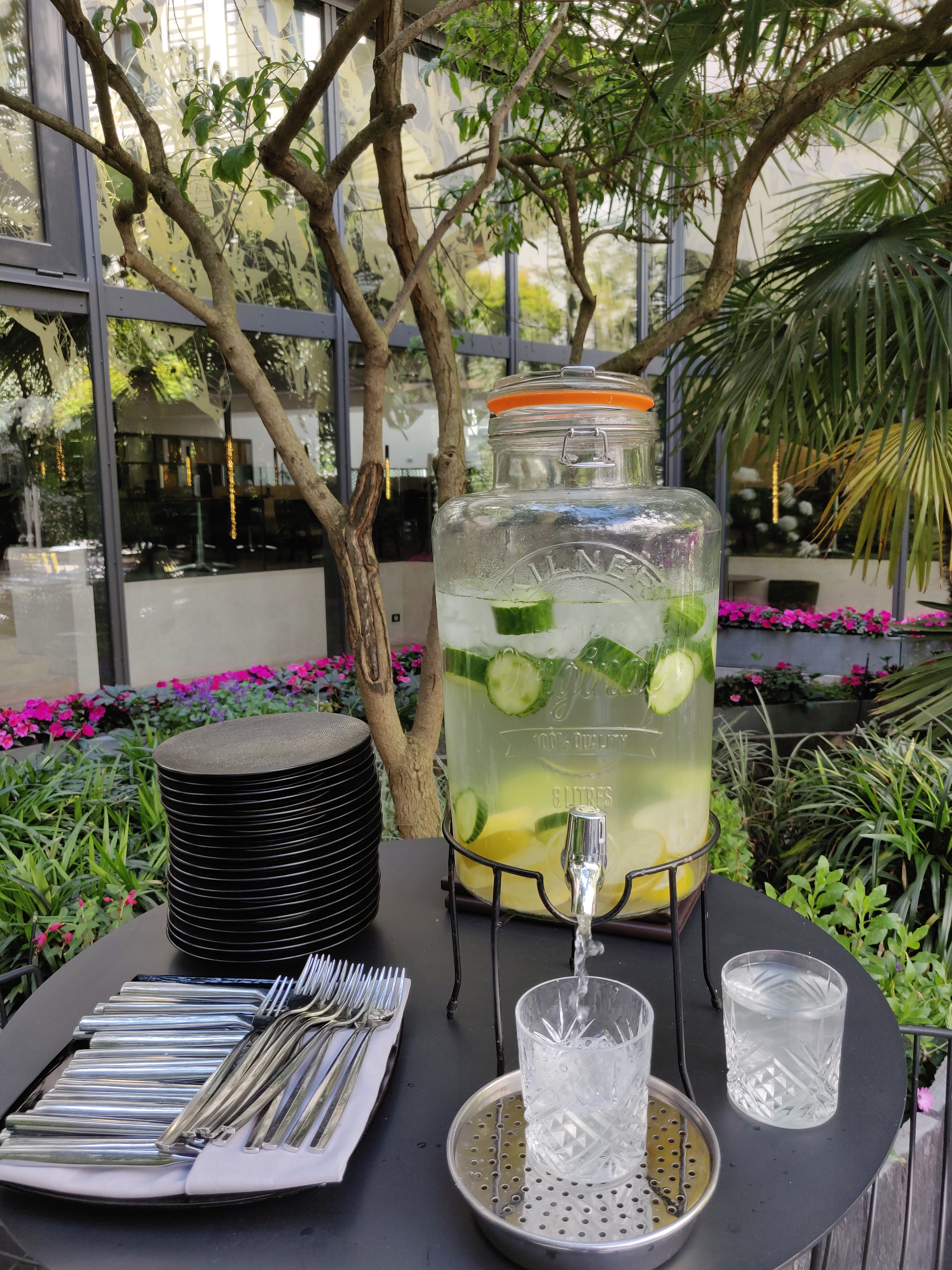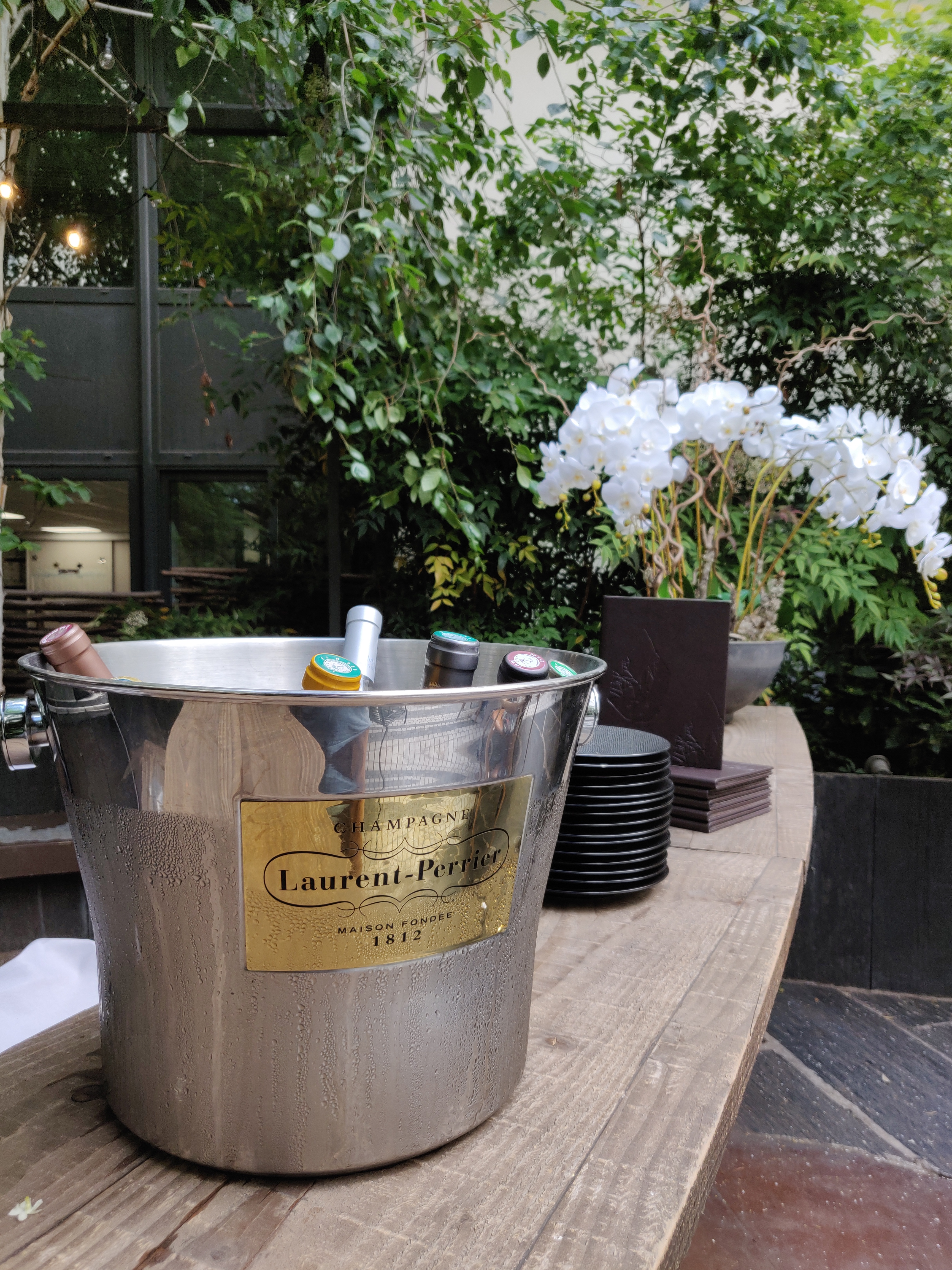 I love the self-service detox water ♥ : it’s perfect for this abnormally hot summer. If you fancy a bit of bubbly, you may order a glass of Laurent Perrier Champagne for 12€.