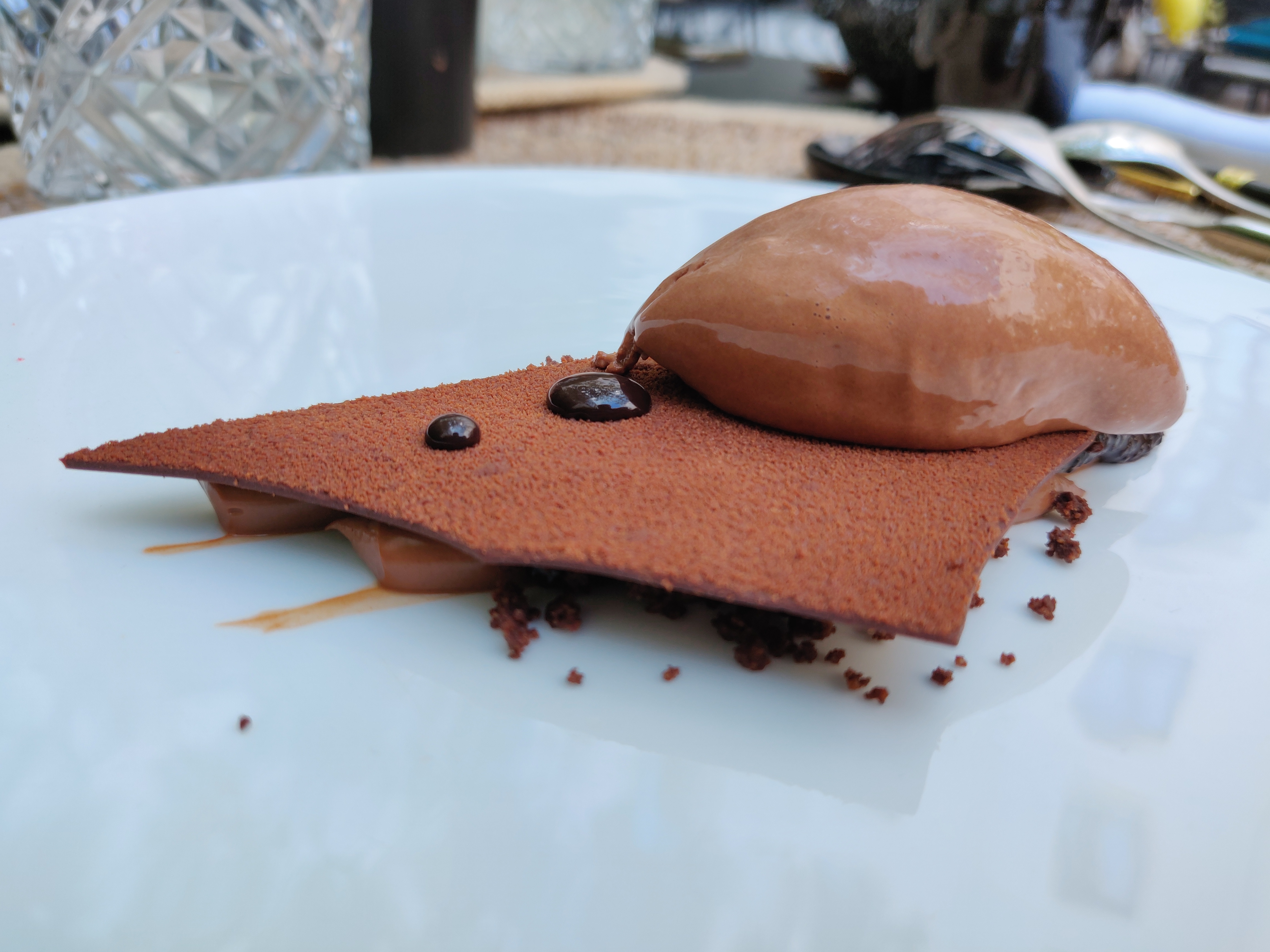 The “Signature” afternoon tea is the most complete offer (though still deprived of savouries) and comes with an extra dessert. We had an “all-chocolate cake” with a chocolate ice cream (first picture below). Nicely presented but forgettable.