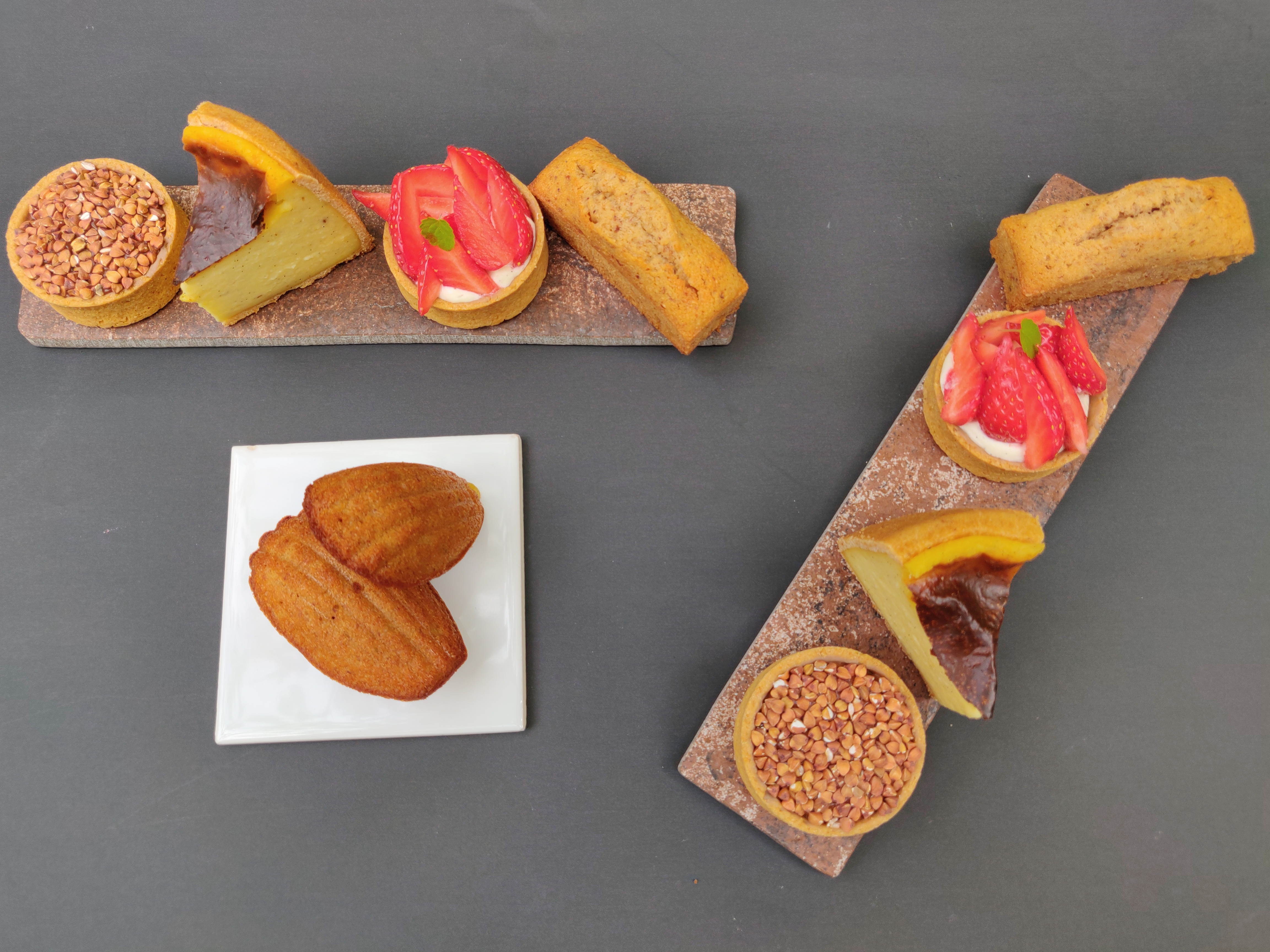 (Sweets, one Pastry, one Dessert and Madeleines with one hot beverage)