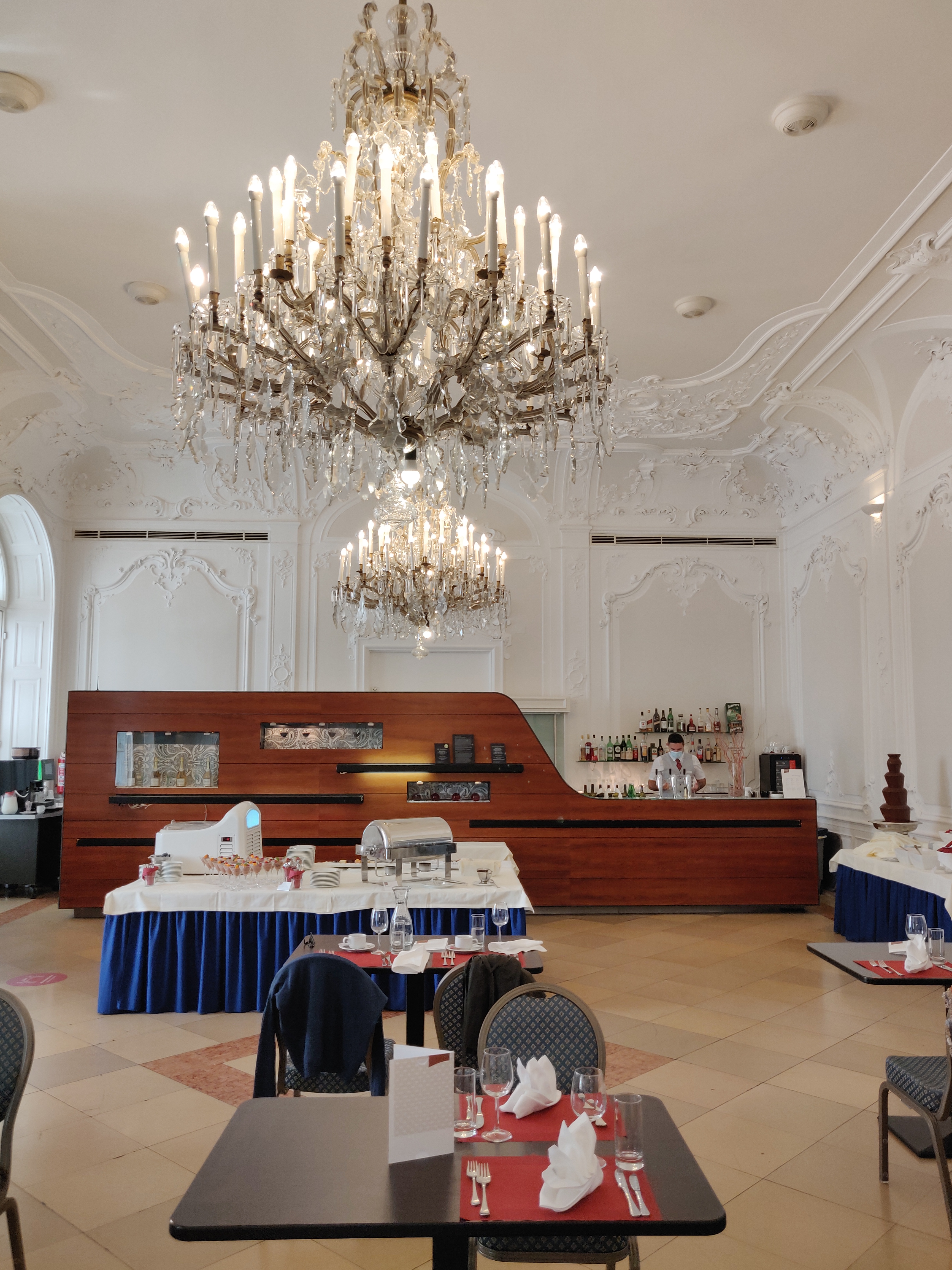 The sweets buffet is good, with a choice of cakes, ice creams and perhaps most importantly, a chocolate fountain. Everything is tasty but a bit below the Viennese standards (e.g. no Croissantsà.