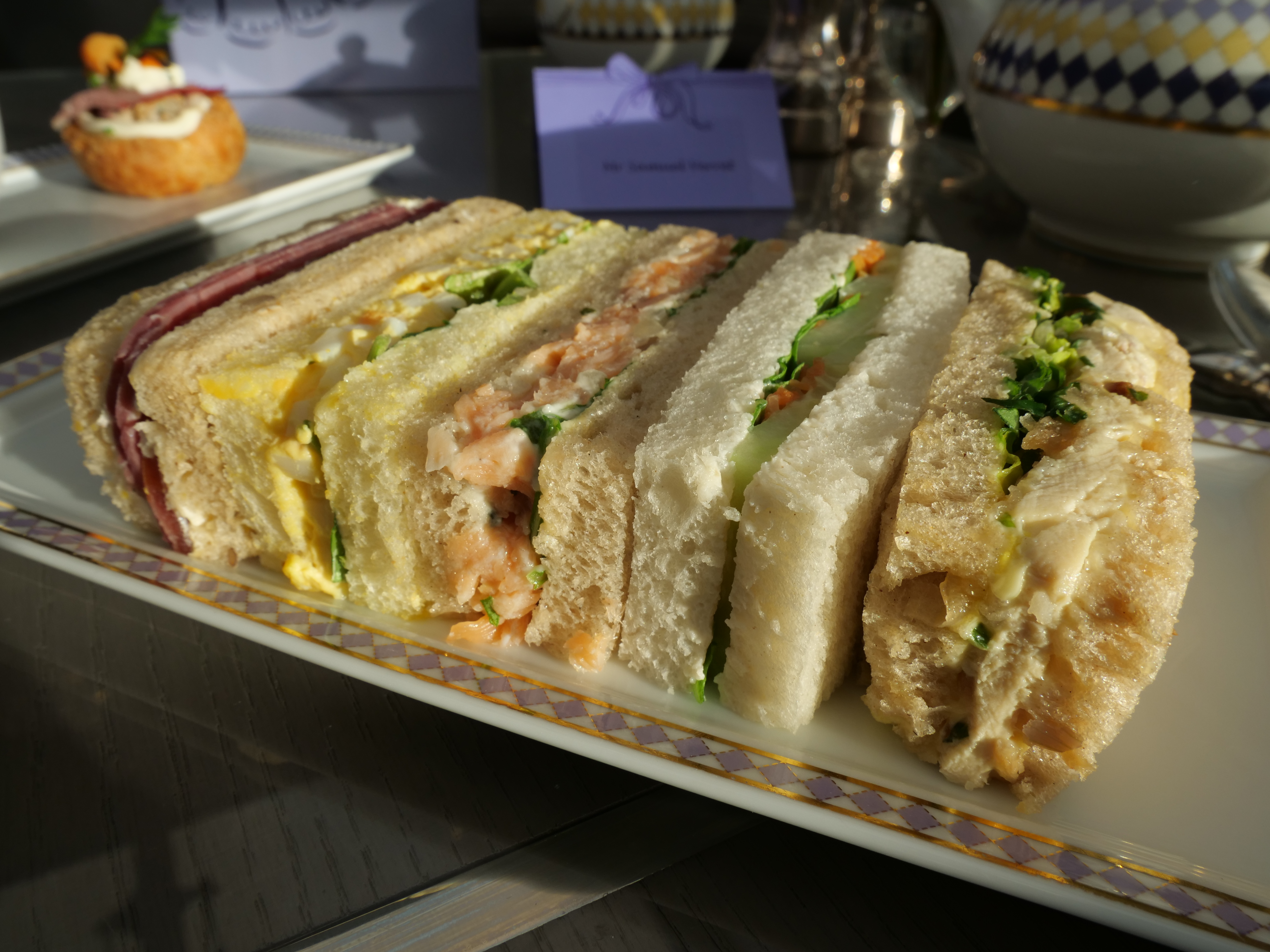 The afternoon tea starts with five delicious sandwiches: