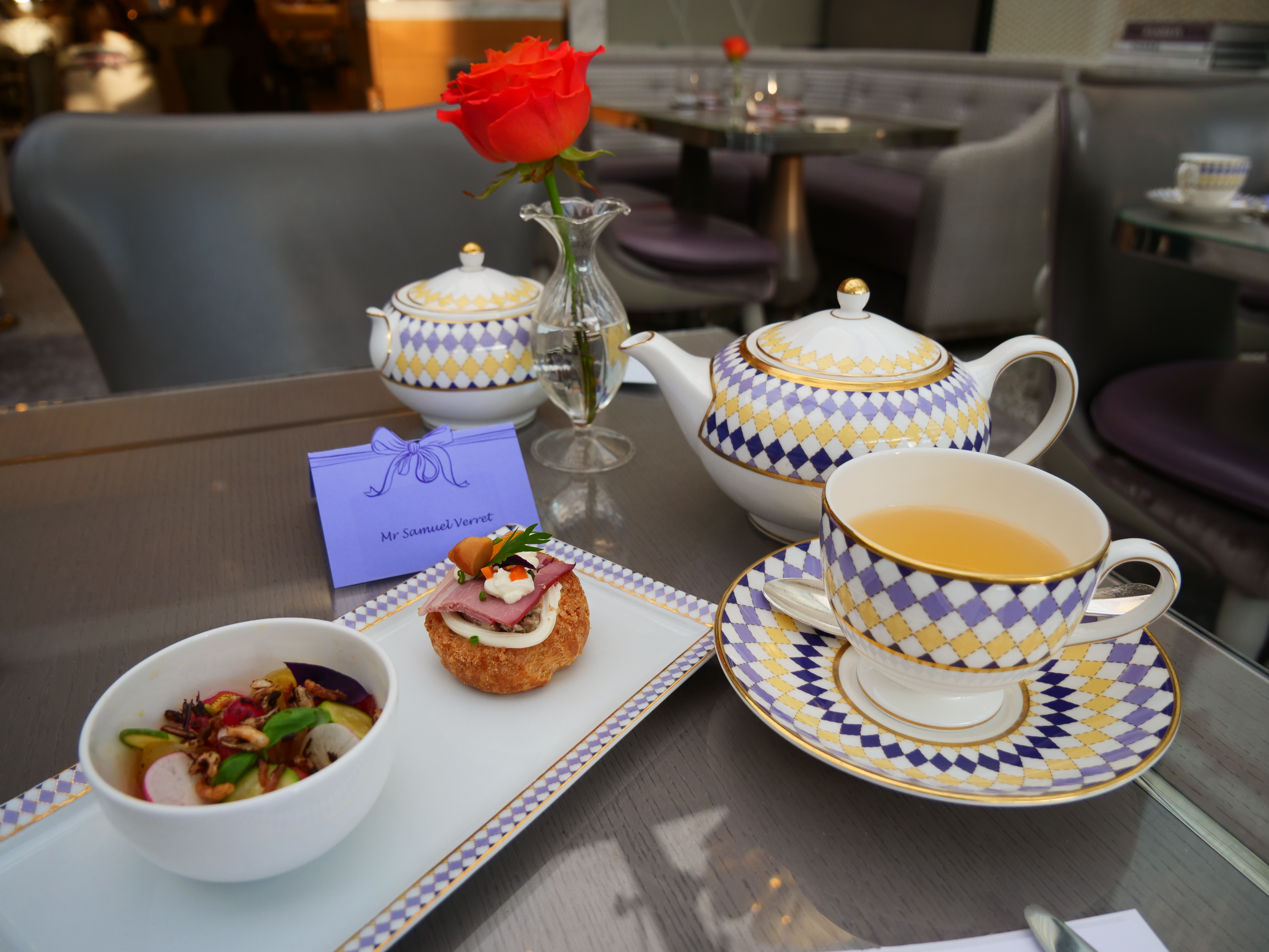 The tea is supplied by JING tea, a very decent supplier that works with roughly half of the hotels serving afternoon tea. There are 28 teas and infusions on offer, more than enough to accommodate everyone. I was glad to see that there is a yellow tea on offer but I didn’t feel extravagant enough to pay the £38 surcharge. Next time, perhaps?