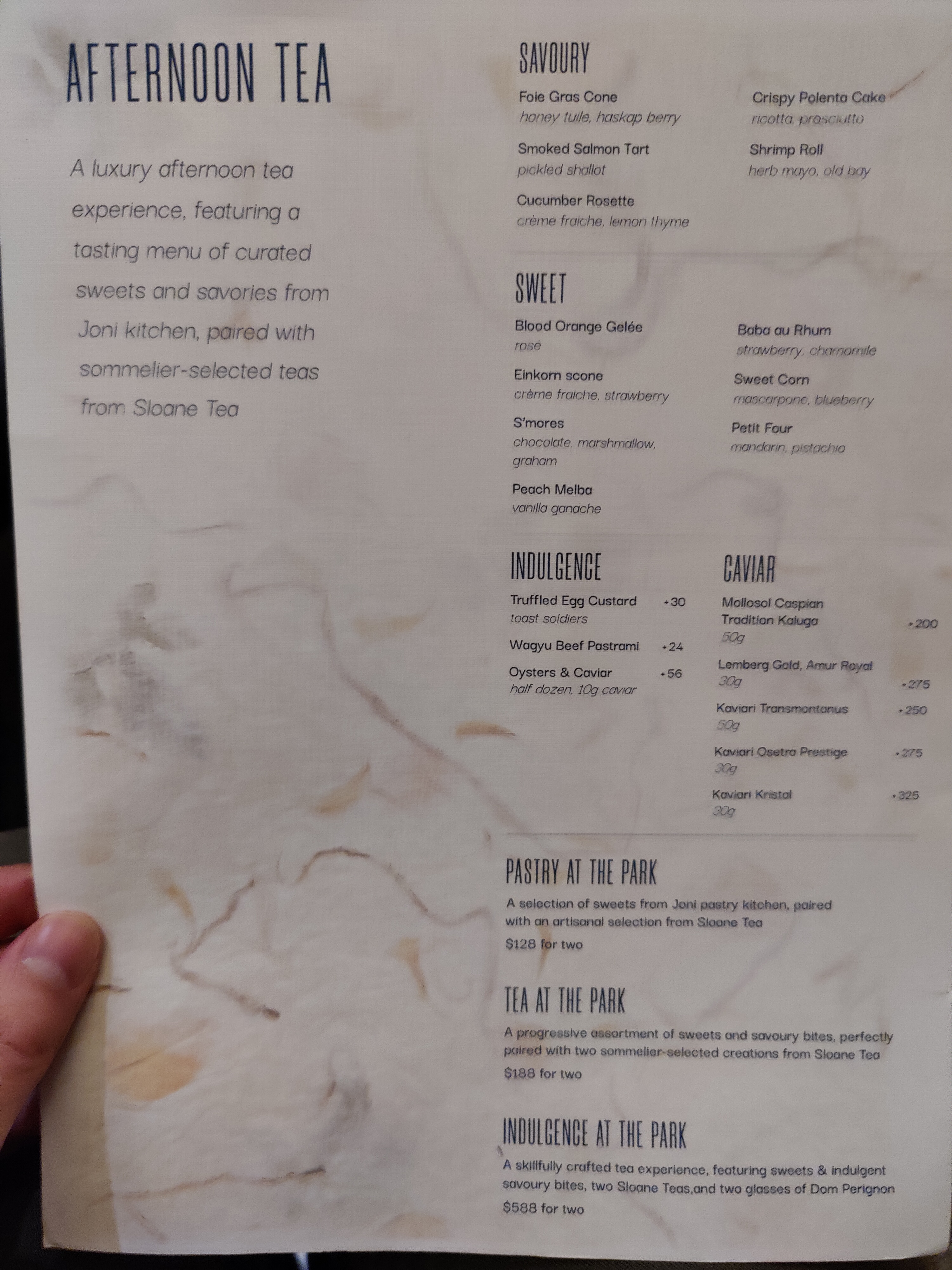 “Tea at the Park” price: 188$ for two