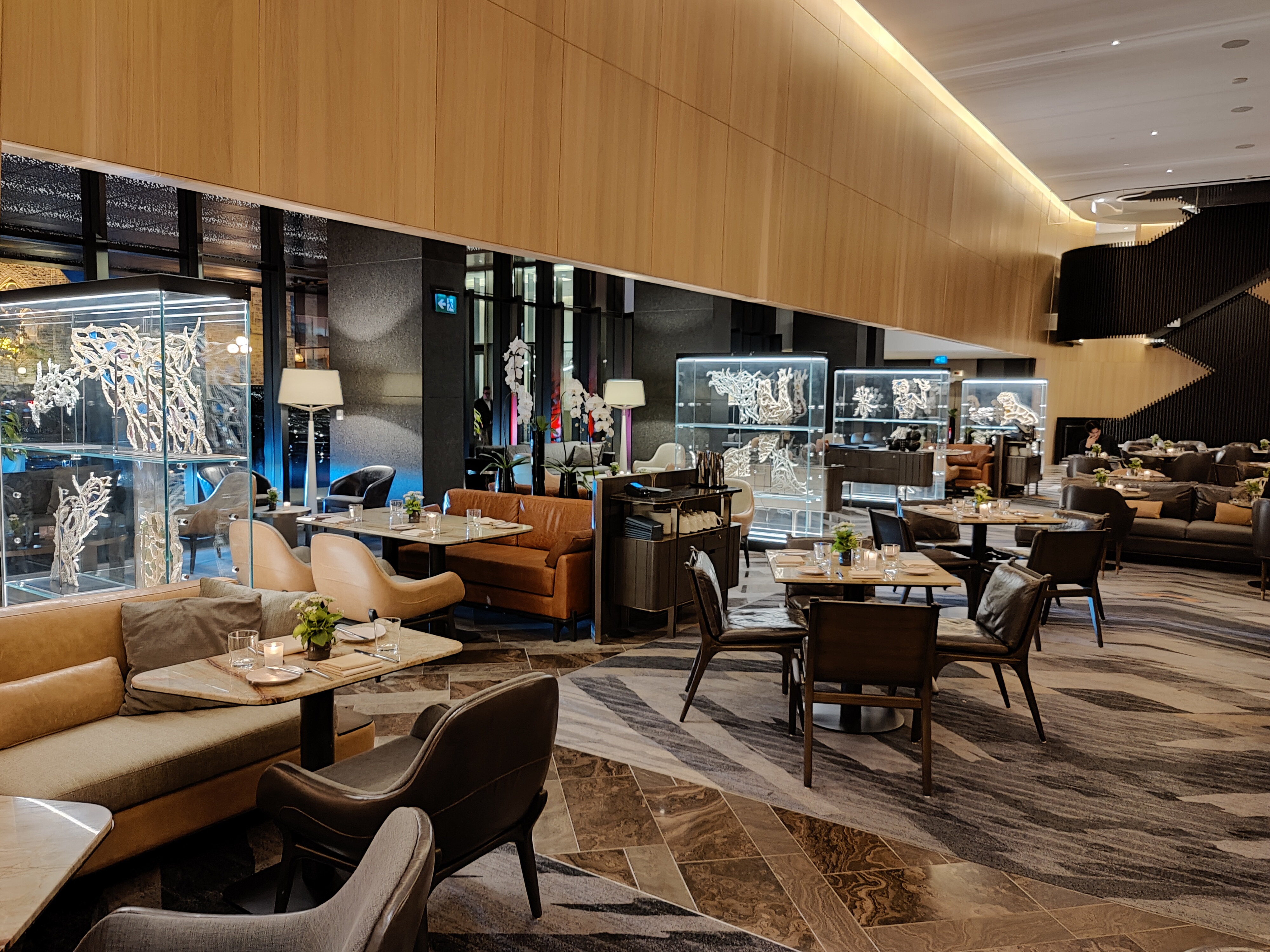 The atmosphere feels very intimate and the venue is isolated from the lobby and offers plenty of privacy. guests who enjoy natural light will be a tad disappointed as the restaurant is located in the middle of the building.
