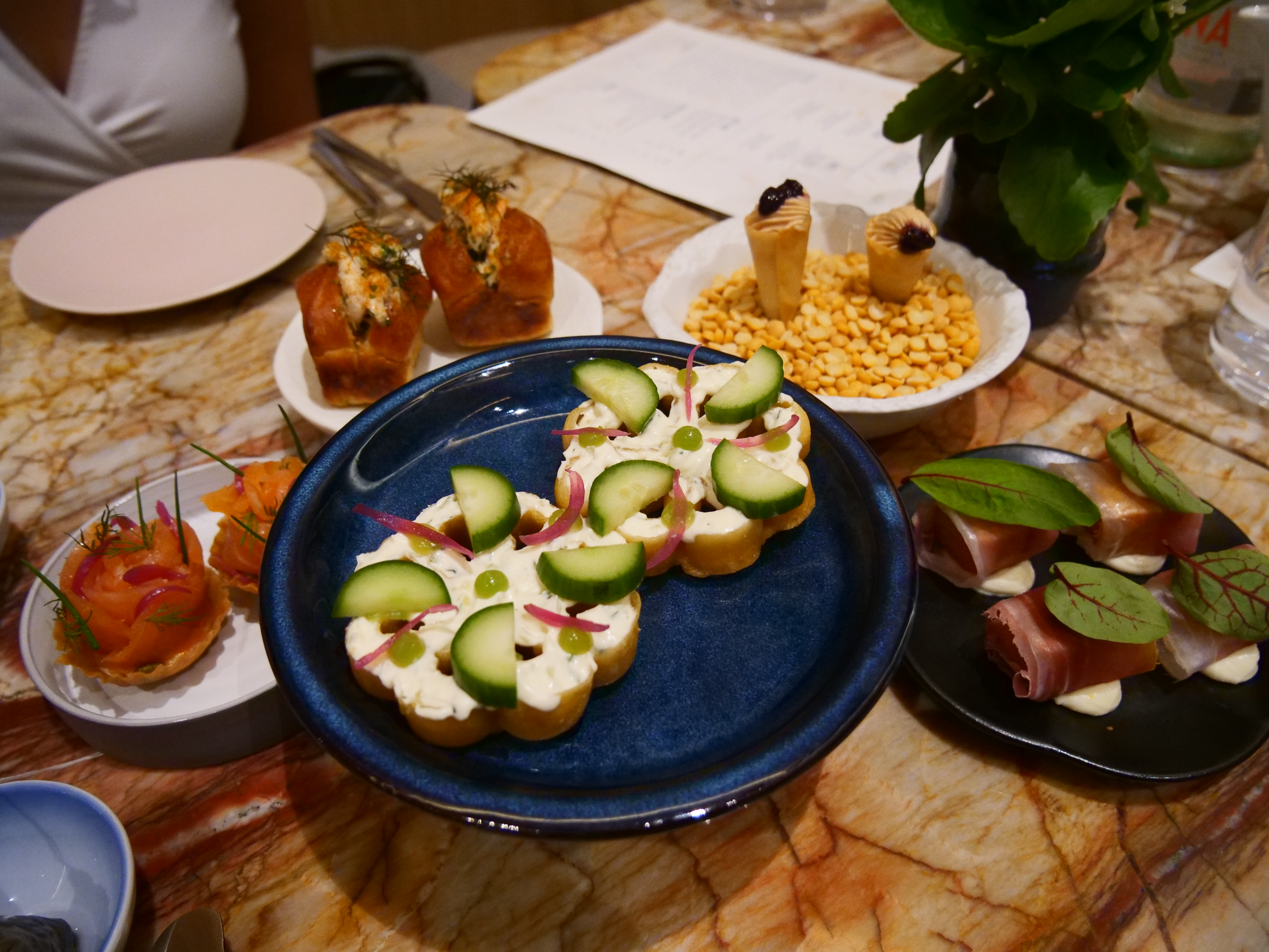 The afternoon tea starts with five savouries, each is very imaginative and flavourful: