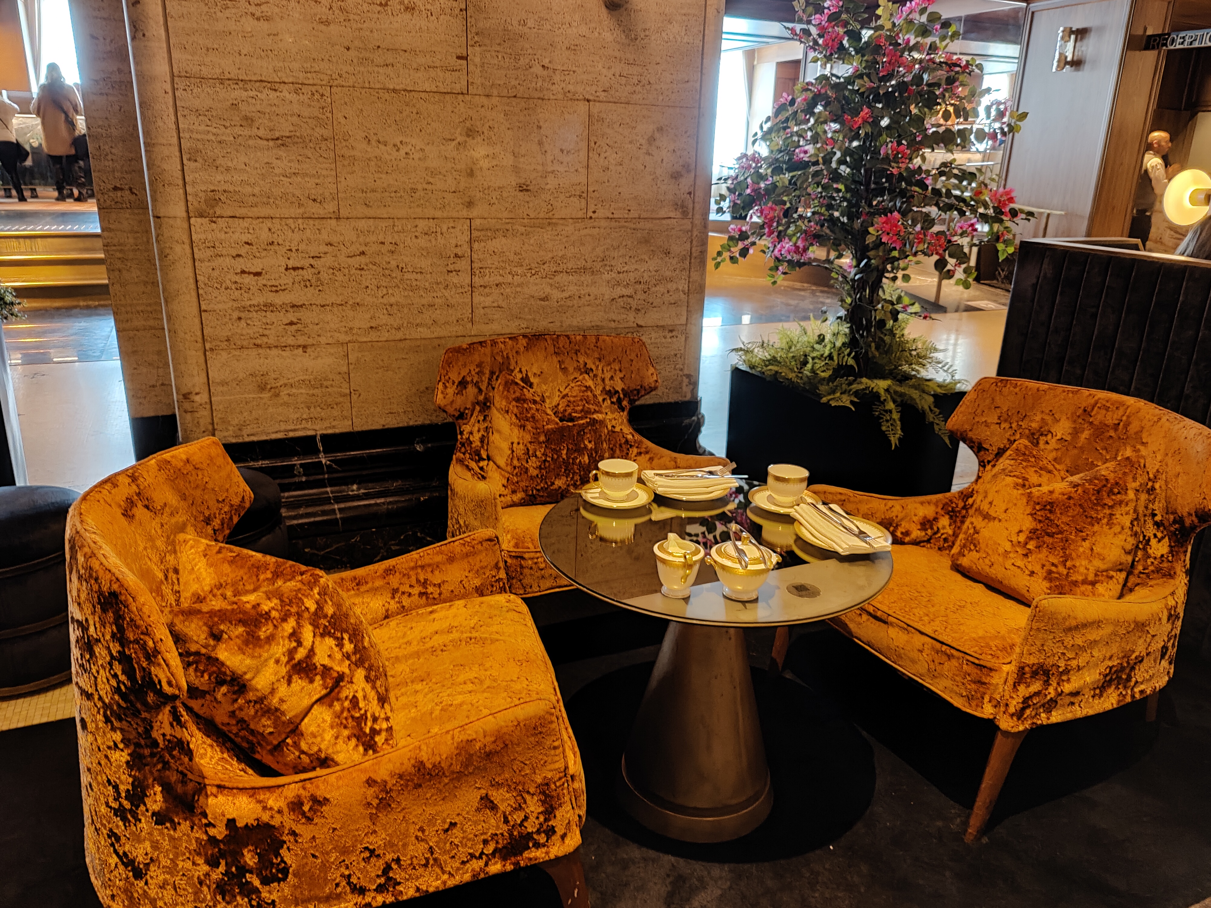 The venue is located in the lobby and yet the atmosphere feels very intimate, as there are plenty of greenery and flowers which isolate you from the people passing by.